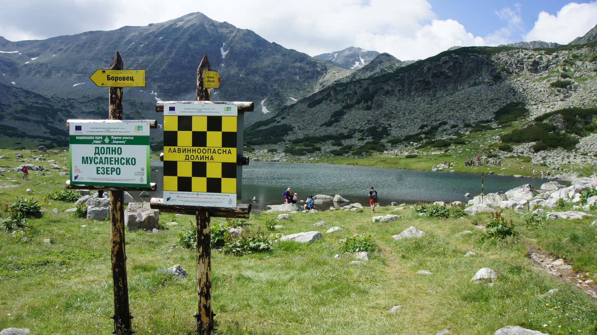 불가리아의 최정상 무슬라 산으로 가는 길중에 만나게 되는 호수와 이정표