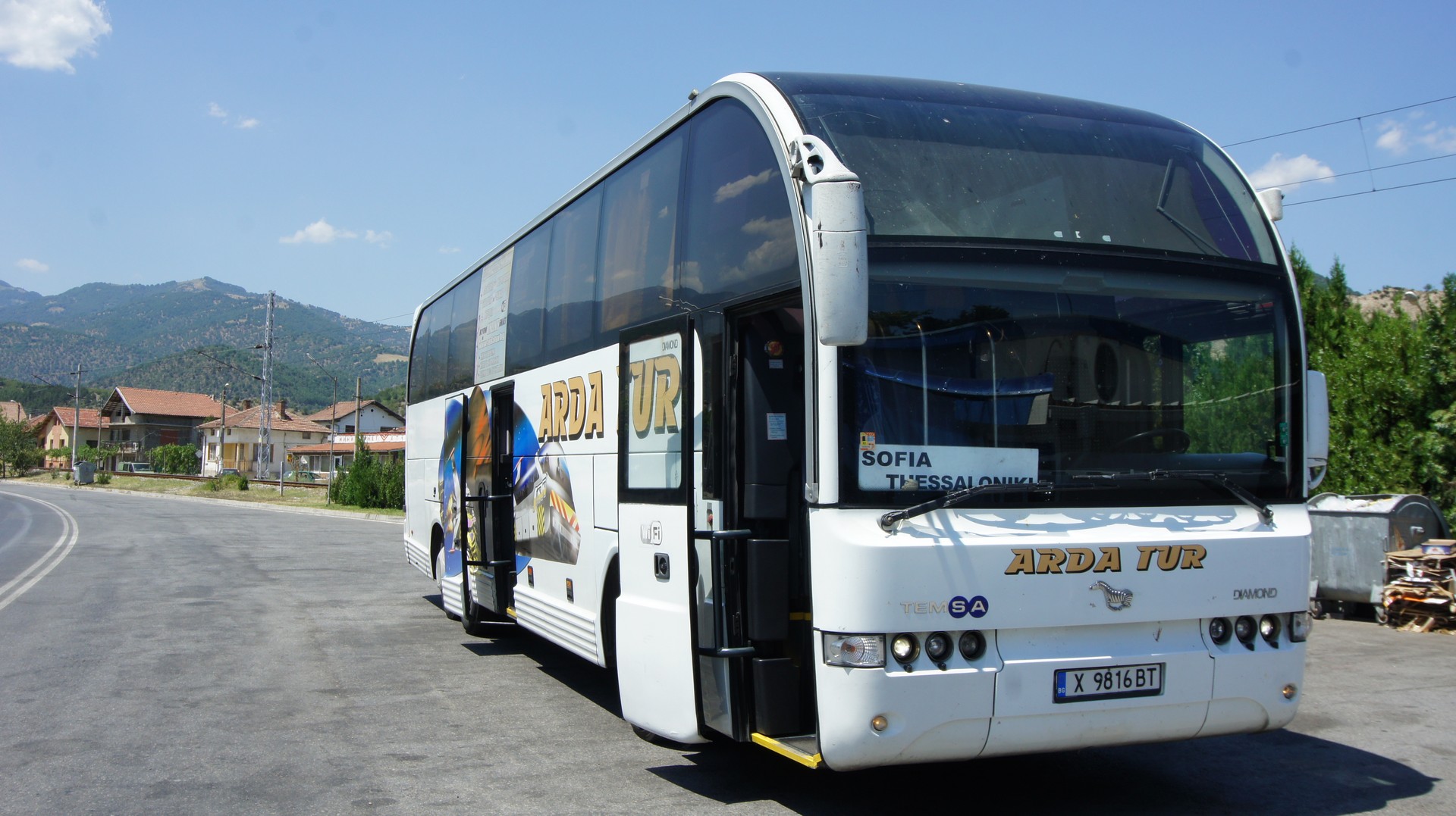 그 다음 예약 할 것은 불가리아에서 그리스로 넘어오는 버스의 예약이다. 불가리아의 브라고에프그라드 (Blagoevgrad) 에서 그리스의 테살로니키 (Thessaloniki)로 가는 버스로 검색하였더니 예약 가능한 인터넷 사이트 (https://ardatur.bg/) 가 찾아져 예매 하였다. 우리가 이용한 버스 회사는 Arda Tur 란 버스 회사 유럽 스타일의 대형 벤츠 버스로 승차감이 좋았다. 약 3 시간 40분 정도가 소요 된다.
