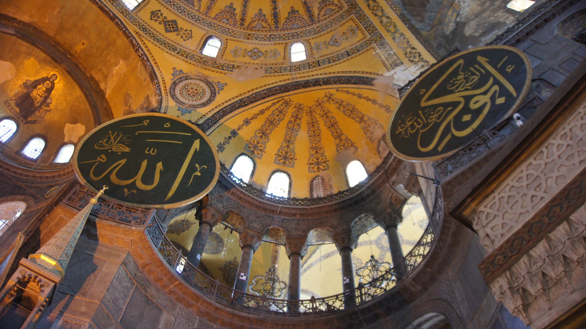 아야 소피아 사원 내부. 기독교와 이슬람교가 공존하는 귀한 곳이다.