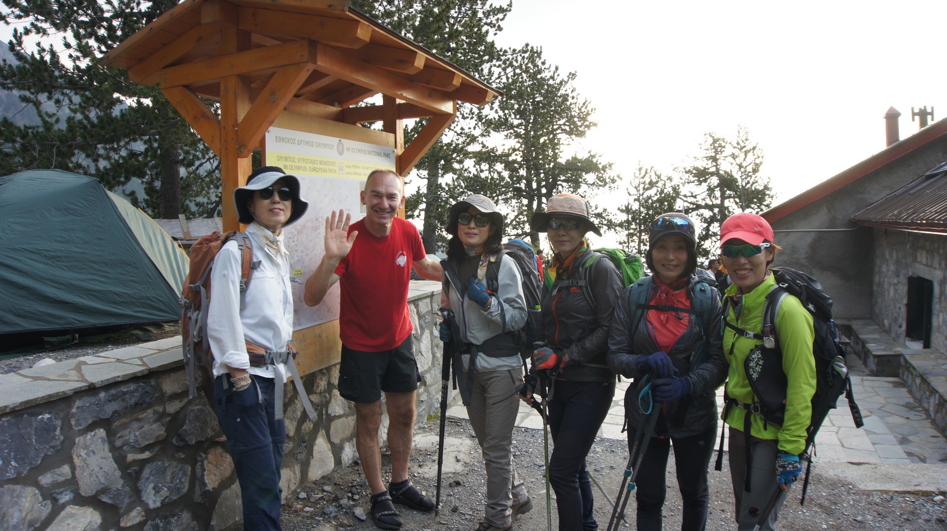 올림포스 산장의 가이드가 일일이 등산 코스를 설명해 주며 잘 다녀오라고 인사를 한다.
