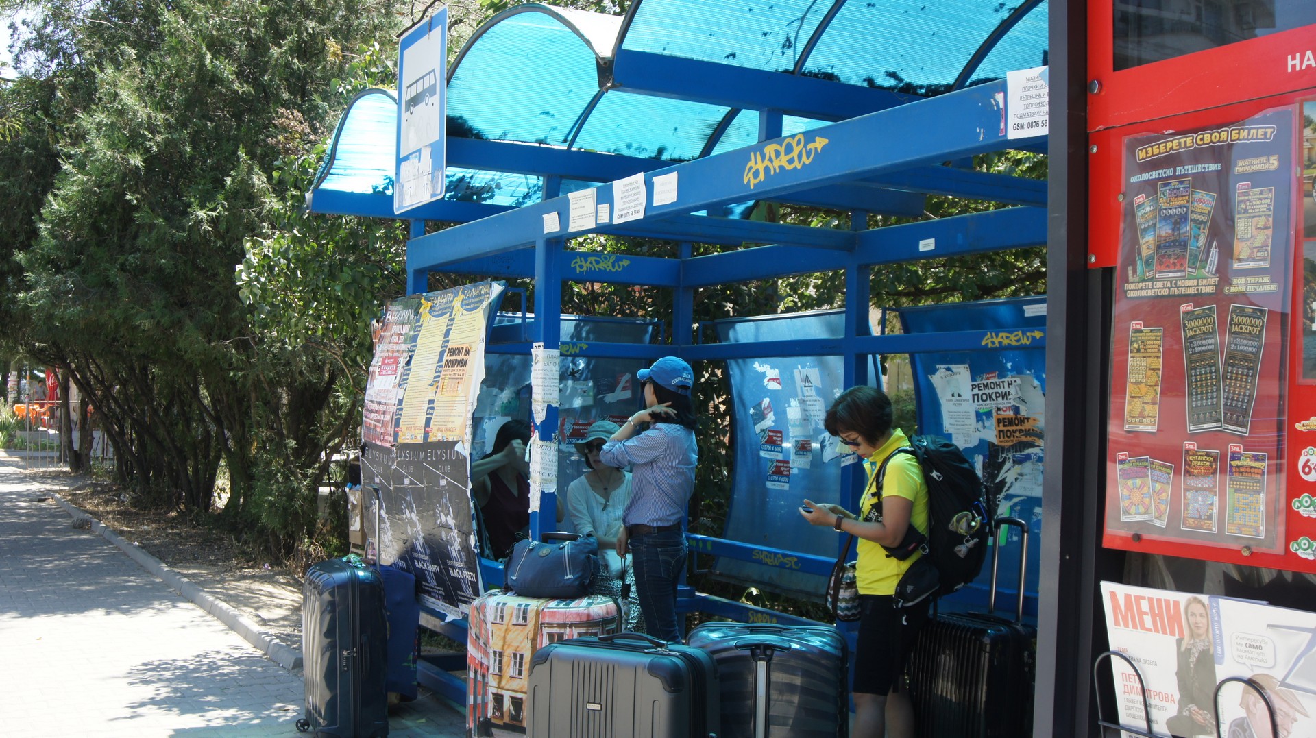 그리스로 가는 버스를 기다리며. 버스 터미널이 아니고 도로 옆에 있는 버스 정류장에서 타야 했다.