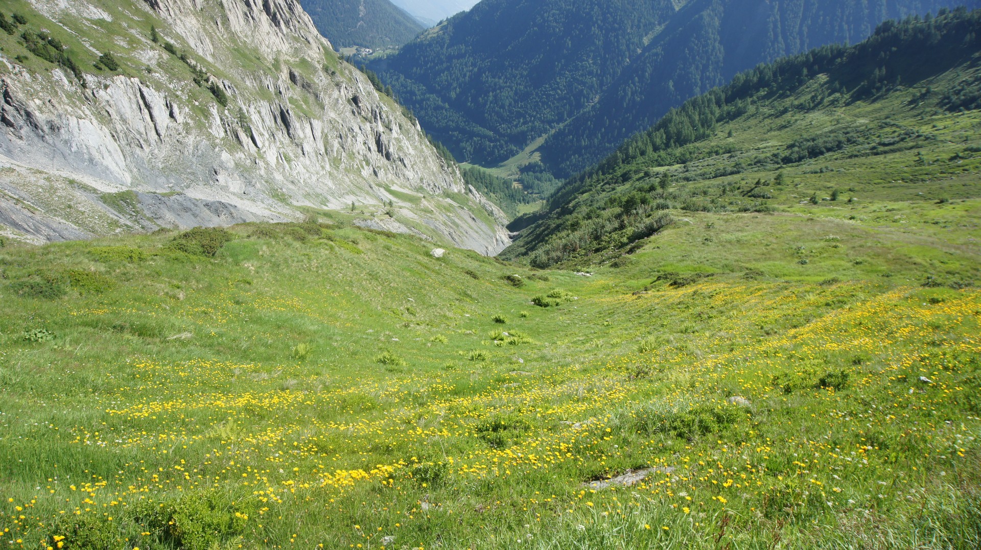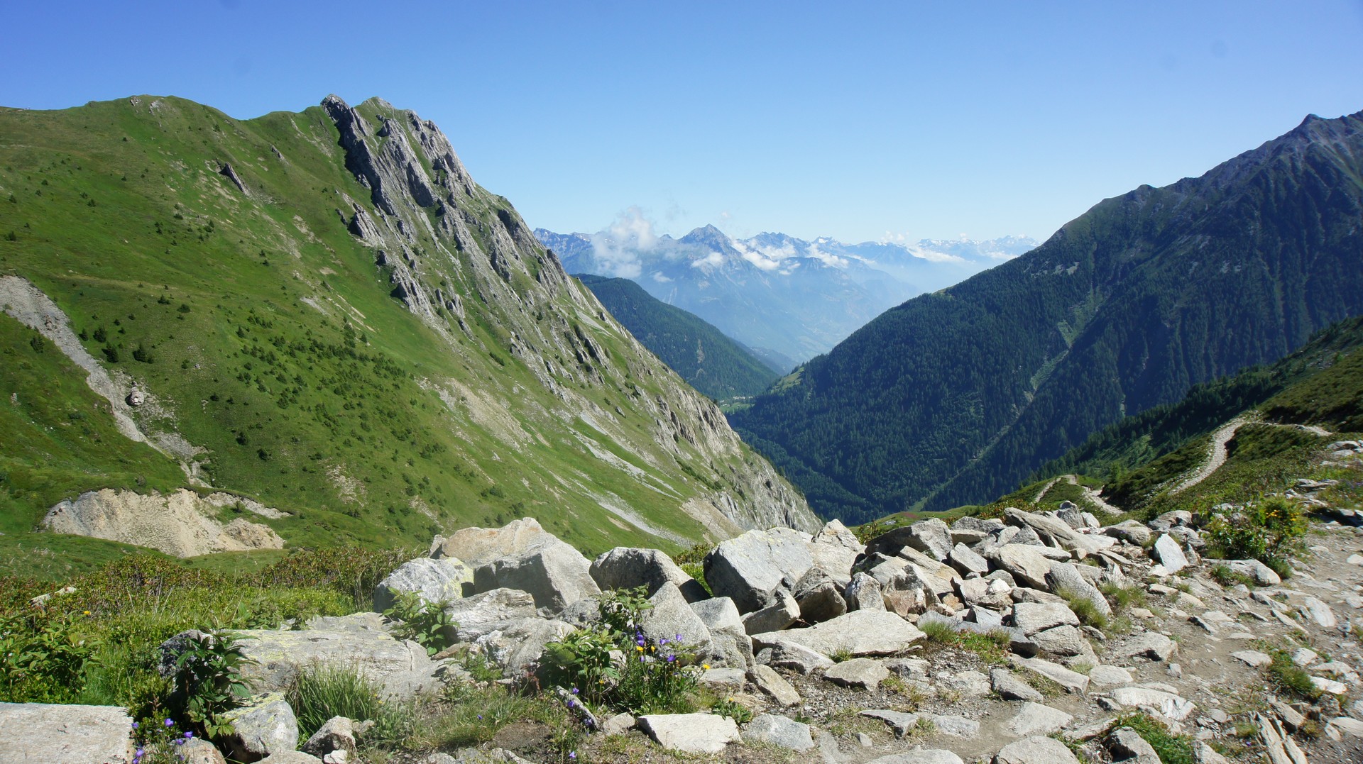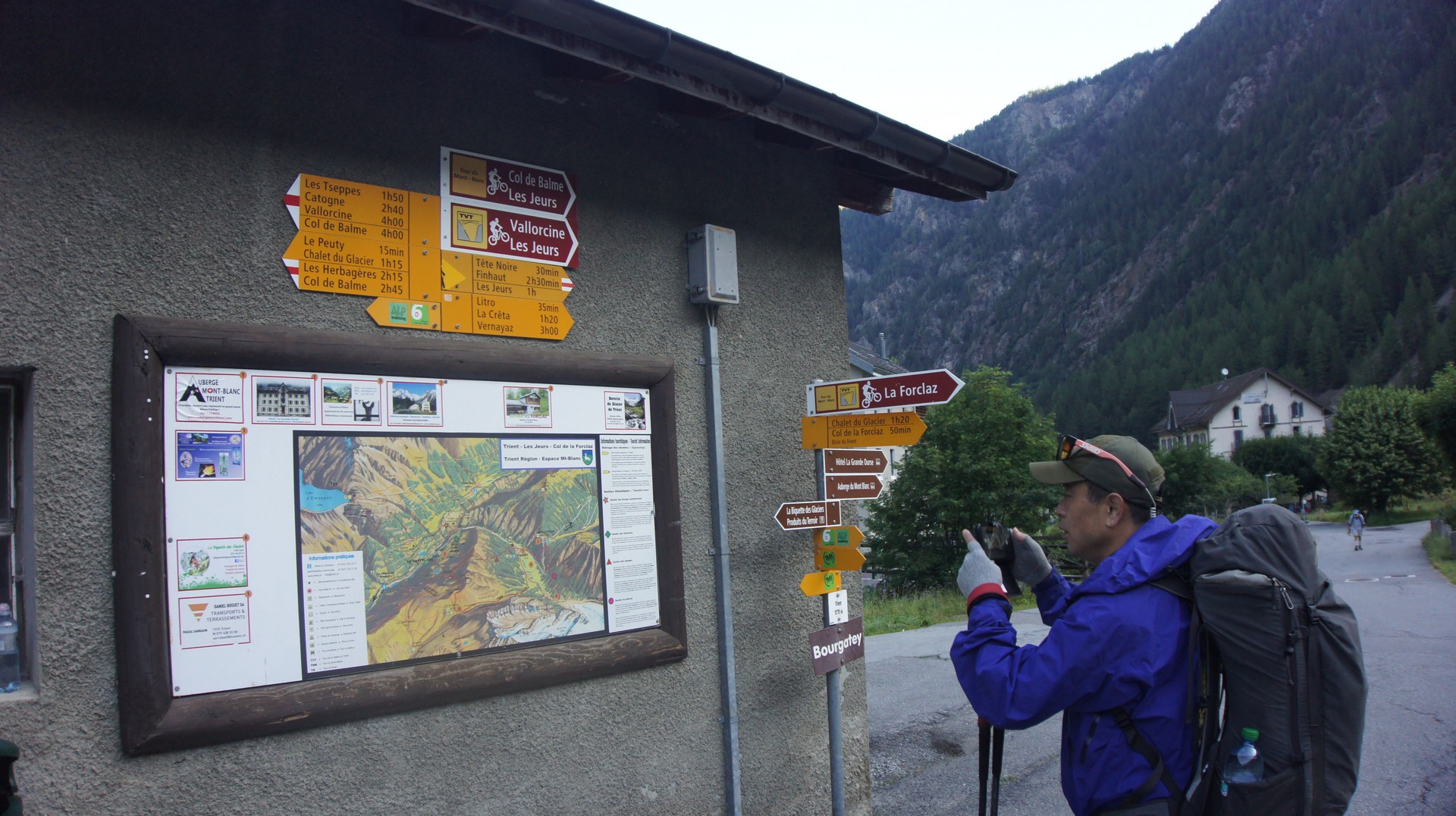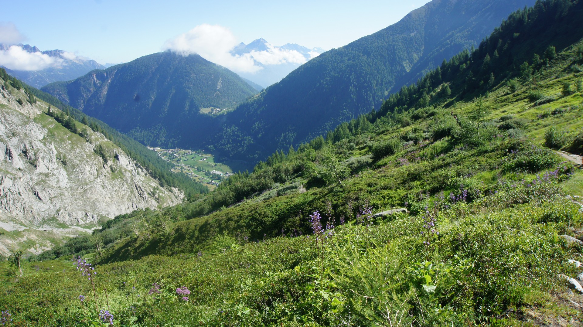 저 아래 아침에 출발한 Trient 마을이 보인다.