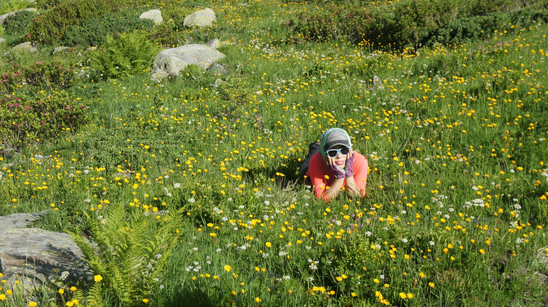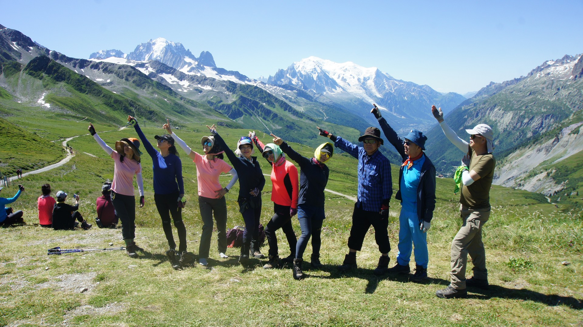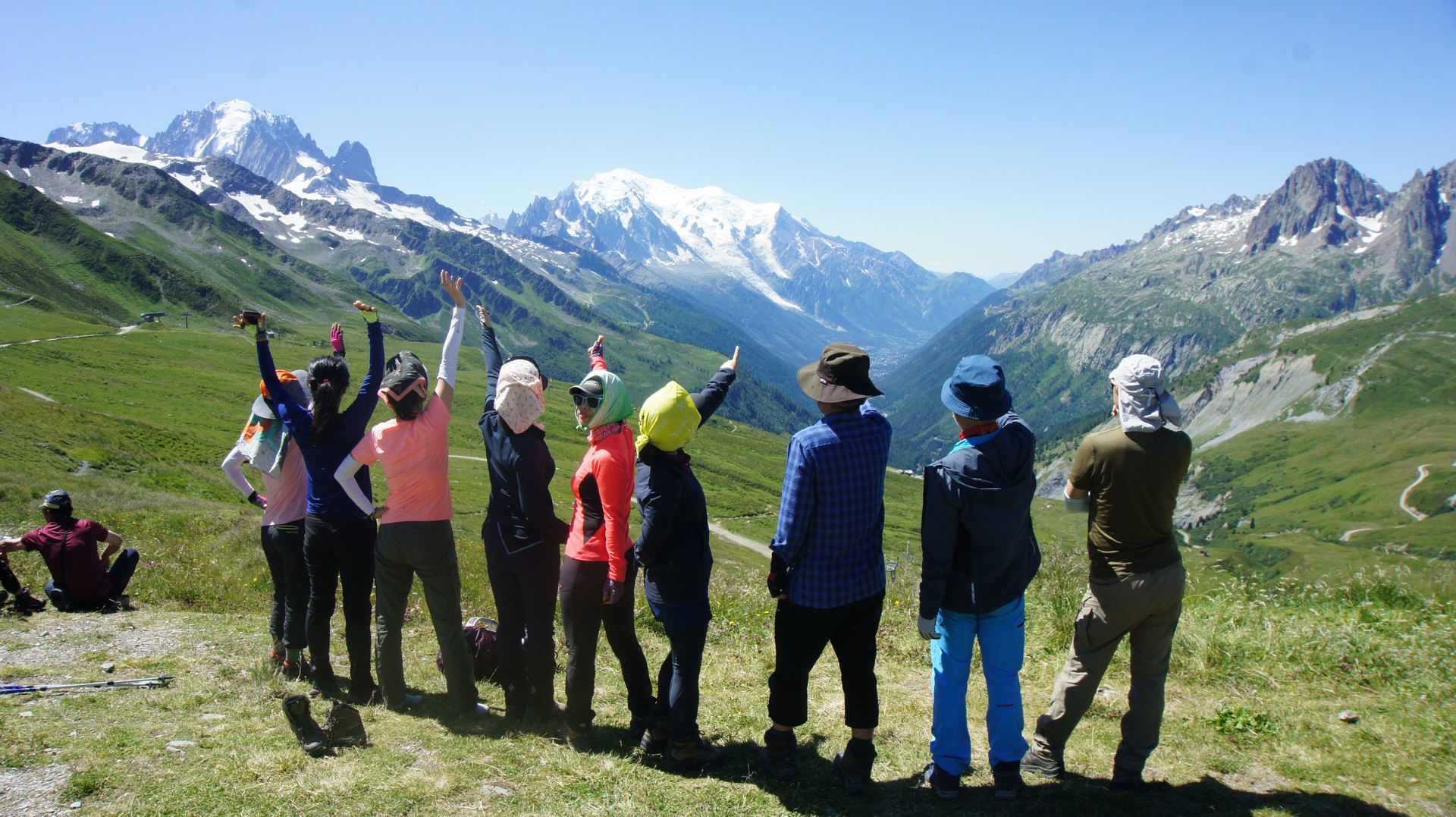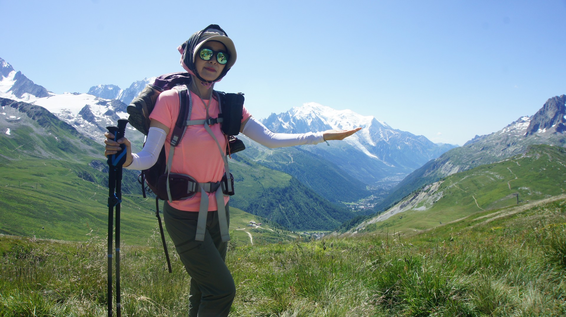 발므 언덕 정상에서는 다시 몽블랑이 보이기 시작한다. 손위에 놓인 몽블랑