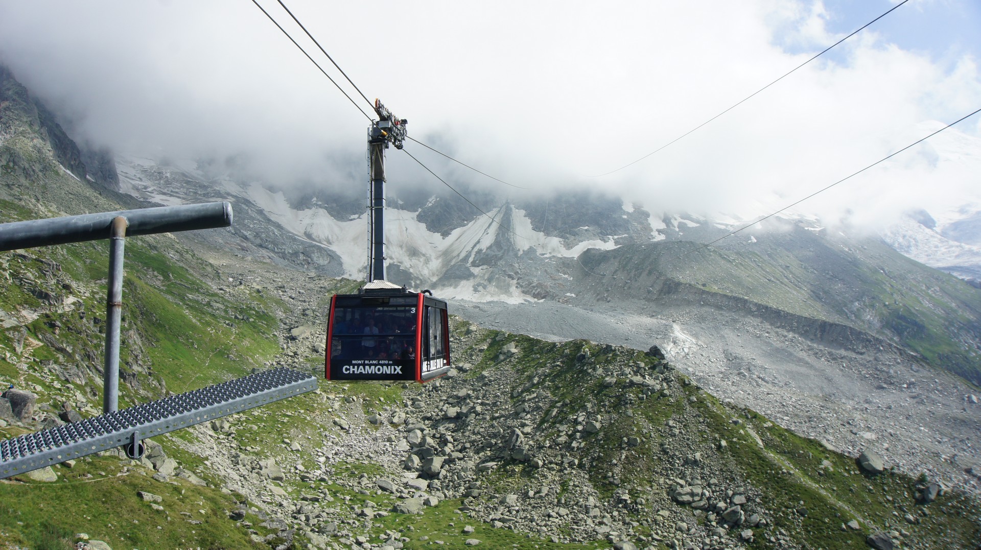 트레킹을 오후 1 시경에 모두 마치고 오후는 관광 모드로 3800 m의 에귀 디 미디 전망대로 가는 케이블 카