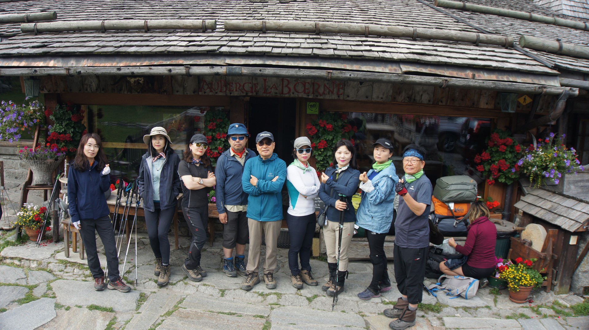 트레킹 마지막 날 6일째 Auberge la Boërne 에서 출발 하기 앞서 기념 촬영