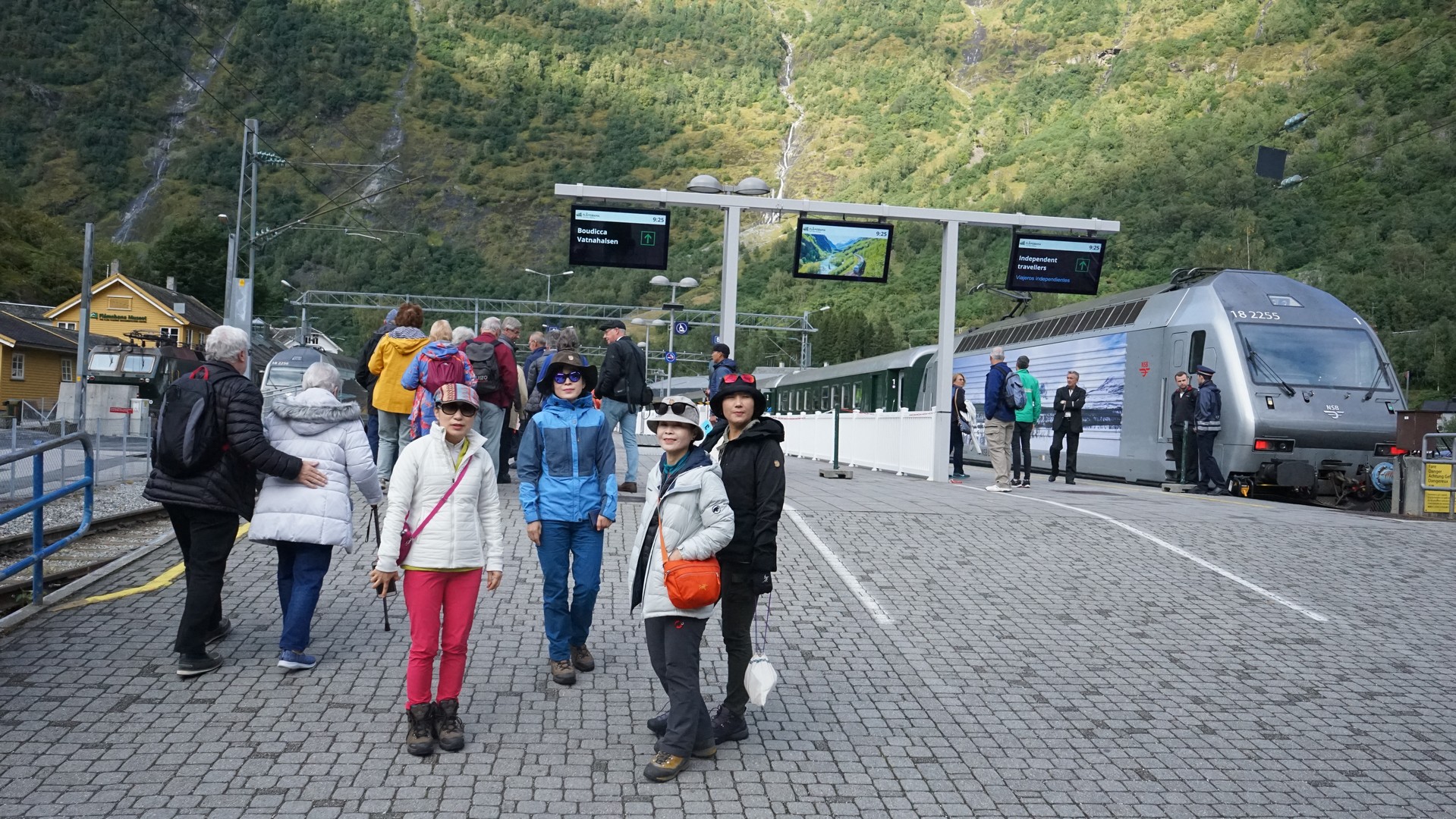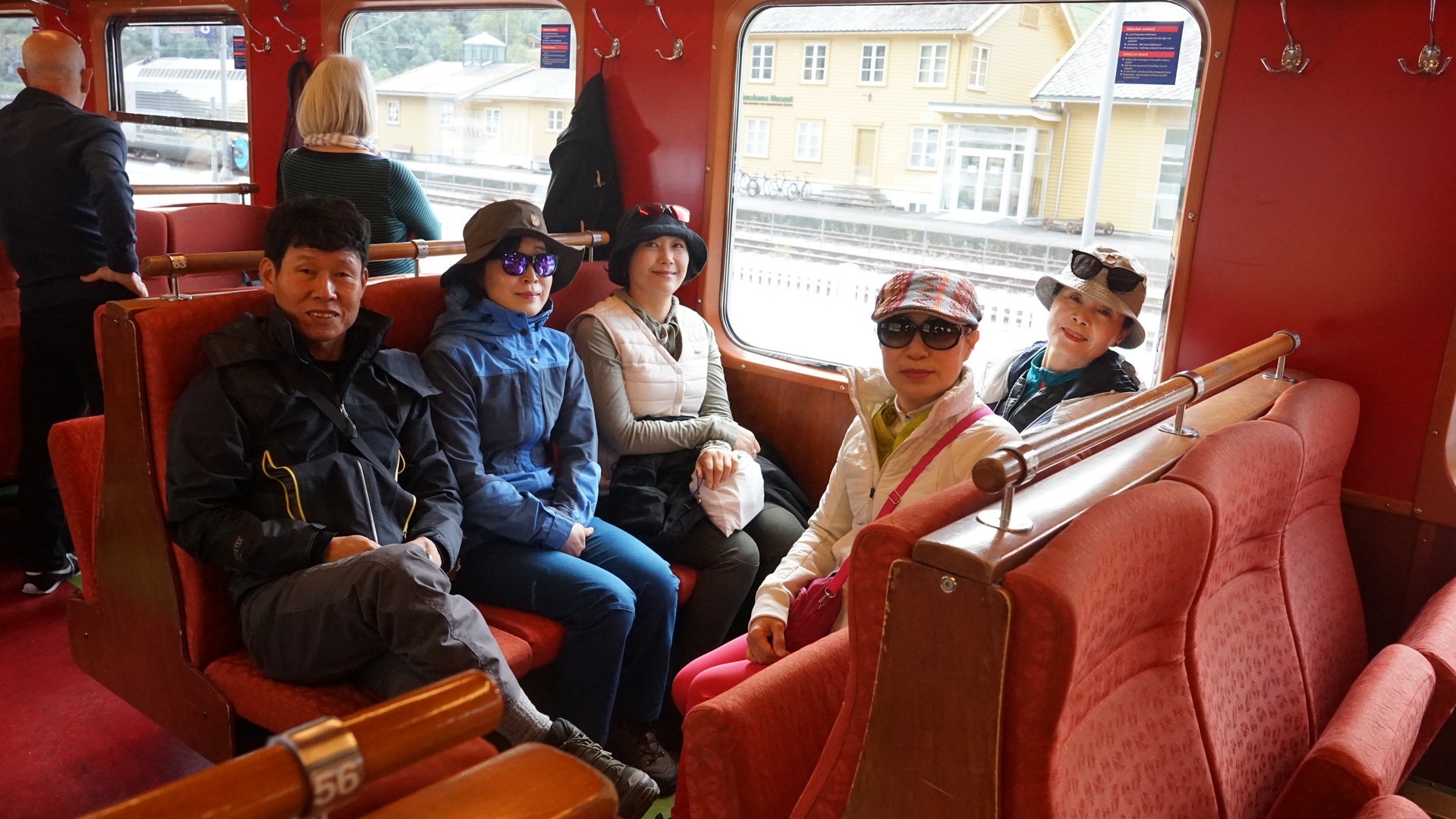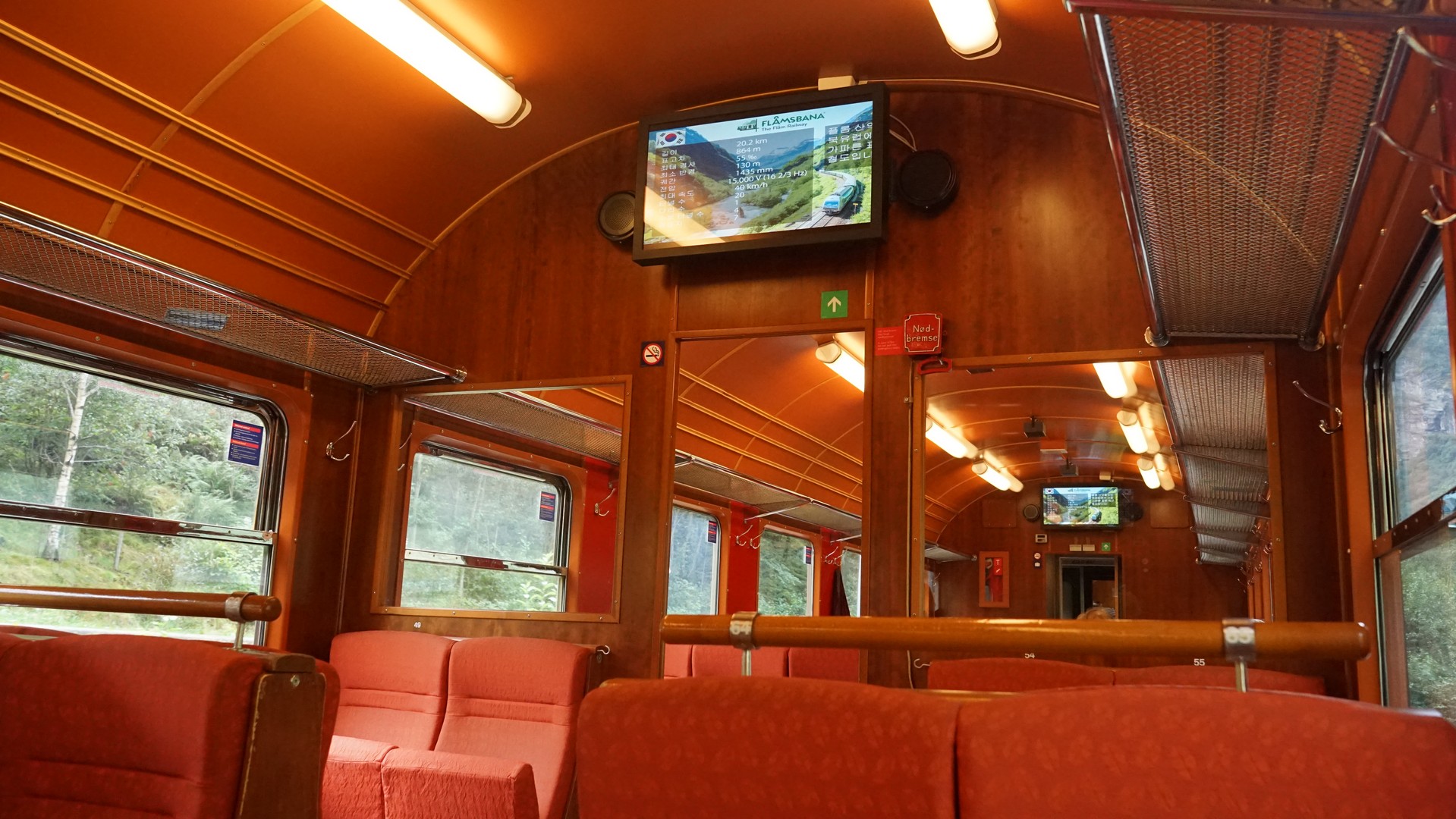 6명 단체로 타니 열차칸을 지정해 주며 한국어 안내 방송을 해준다. 안내 전광판도 한글과 영어, 노르웨이어로 나옴