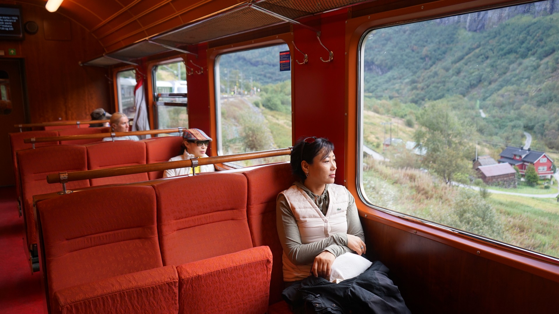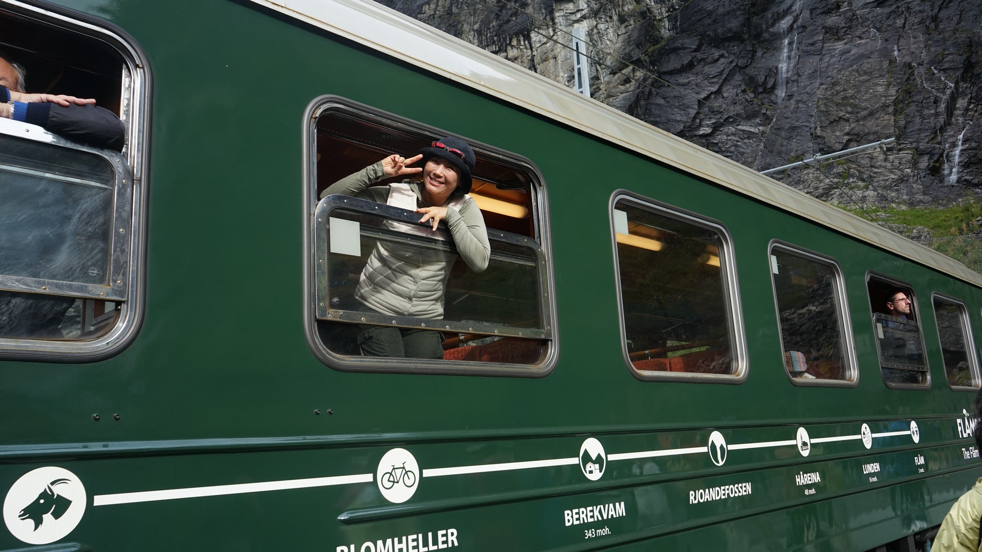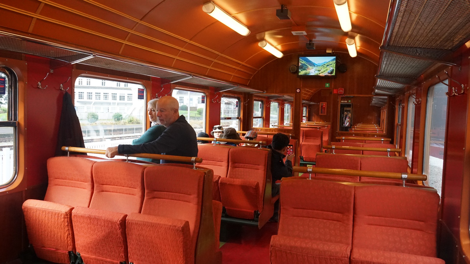 6명 단체로 타니 열차칸을 지정해 주며 한국어 안내 방송을 해준다. 안내 전광판도 한글과 영어, 노르웨이어로 나옴