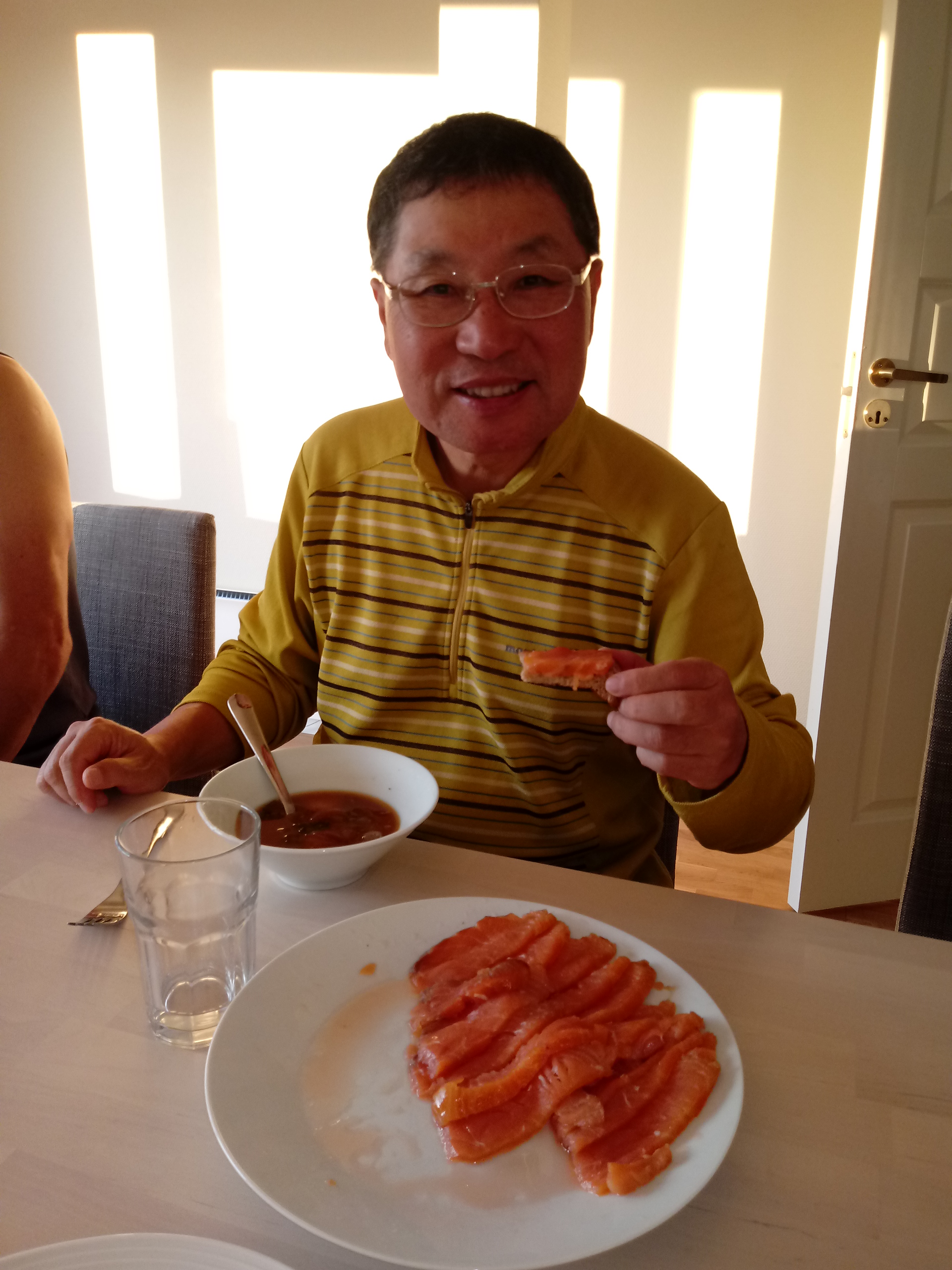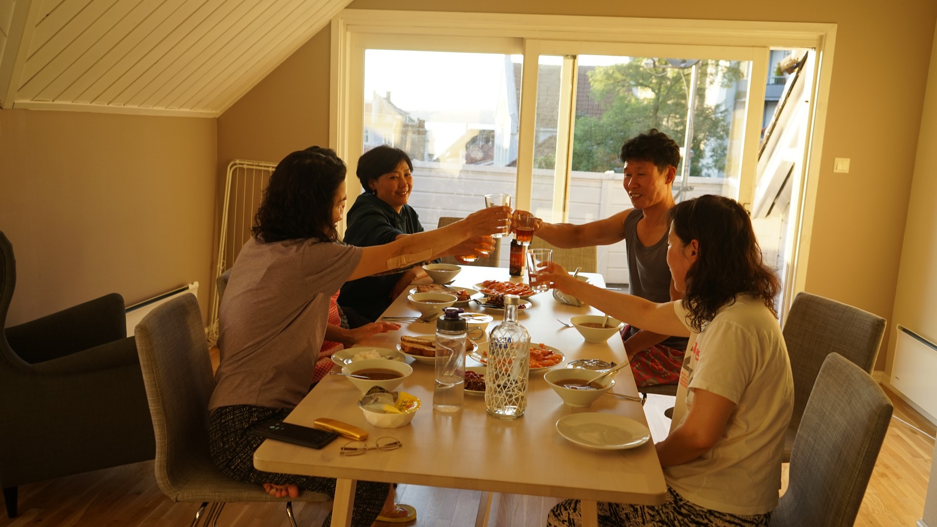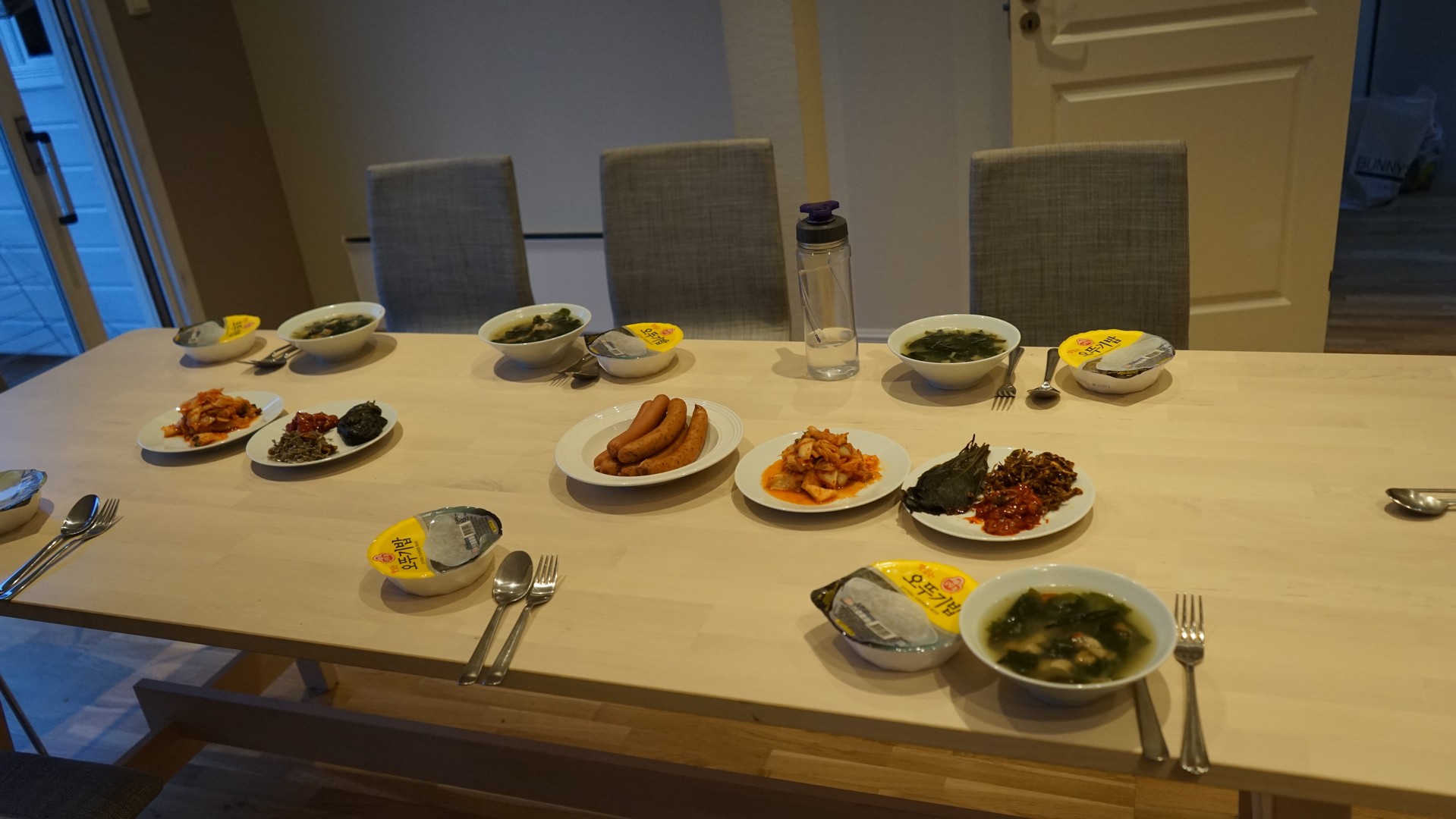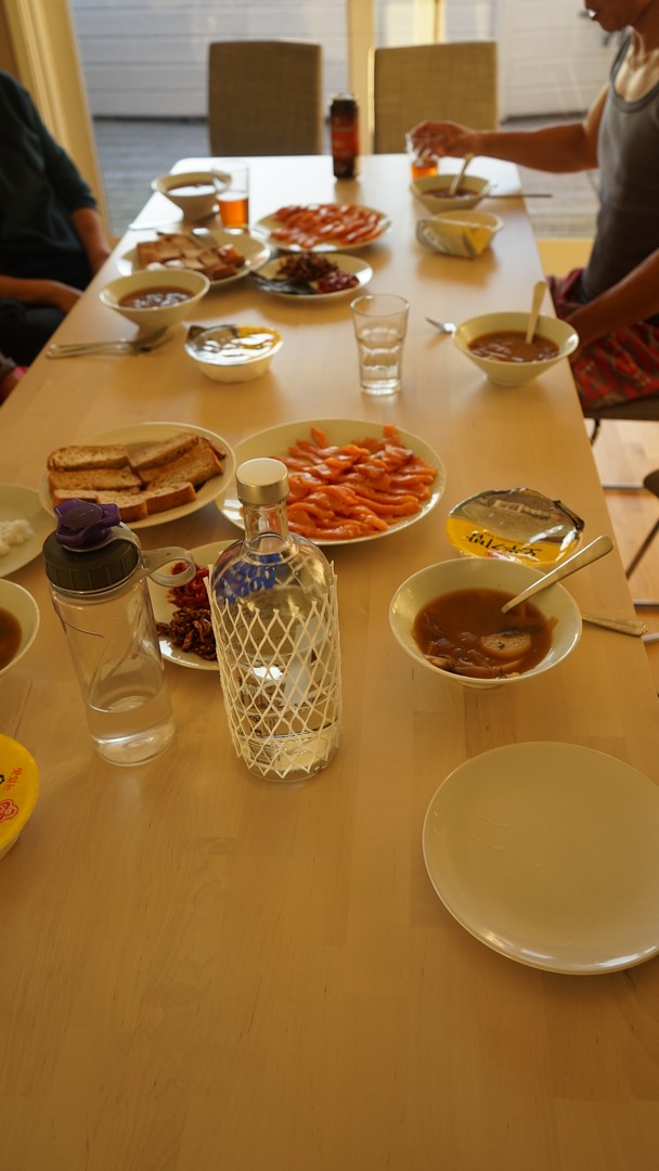 베르겐에서 아침 식사 준비. 햇반에 황태를 넣은 미역국 등으로