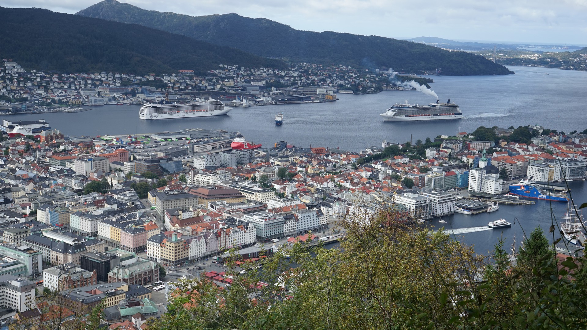 베르겐 시내를 산위에서 바라 다 본 모습