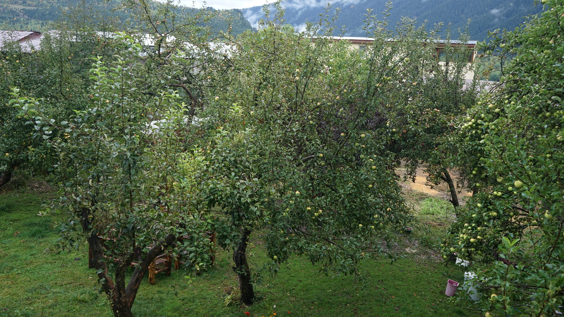 메스티아 마을 게스트 하우스 앞 마당의 사과 나무. 얼마 든지 따 먹으라고 해서 풍성한 간식 거리를 제공했다.