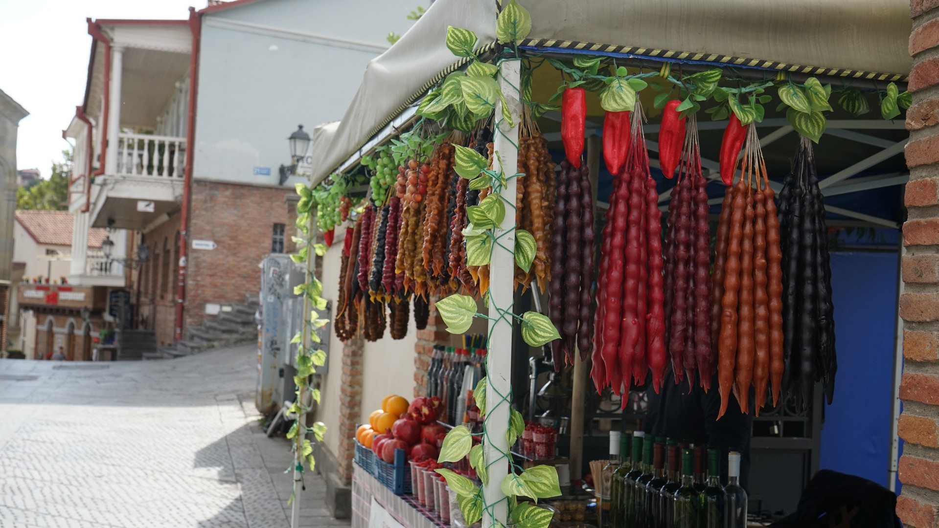 조지아 국민 간식 거리 . 호두 등 견과류를 과일 즙에 넣어 말린 츠루츠켈라
