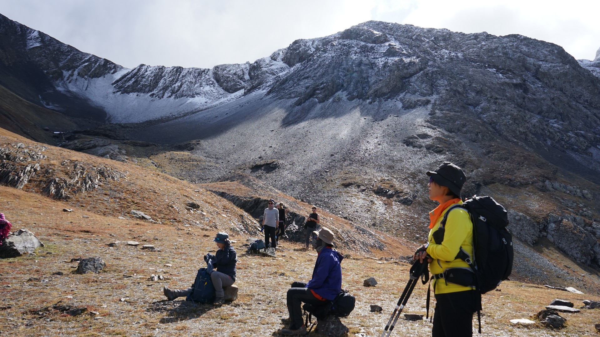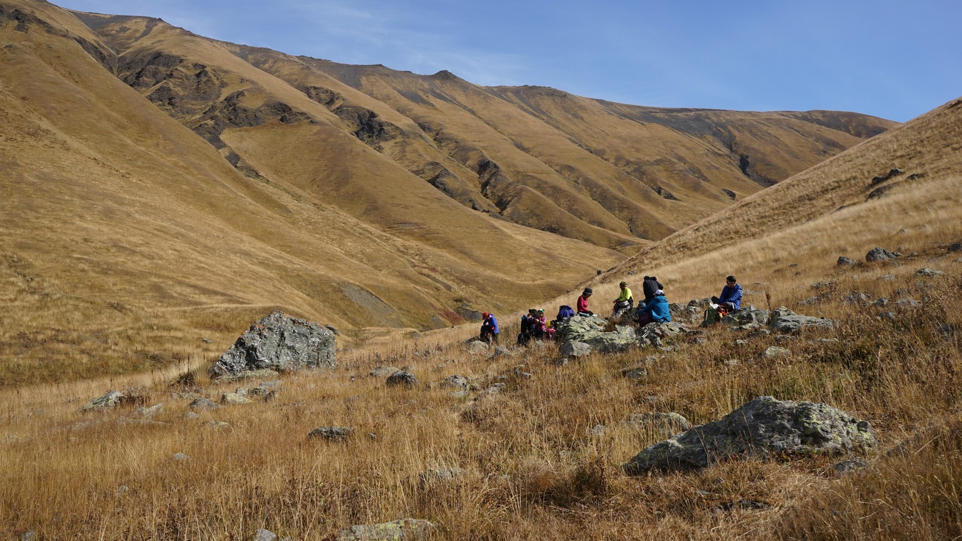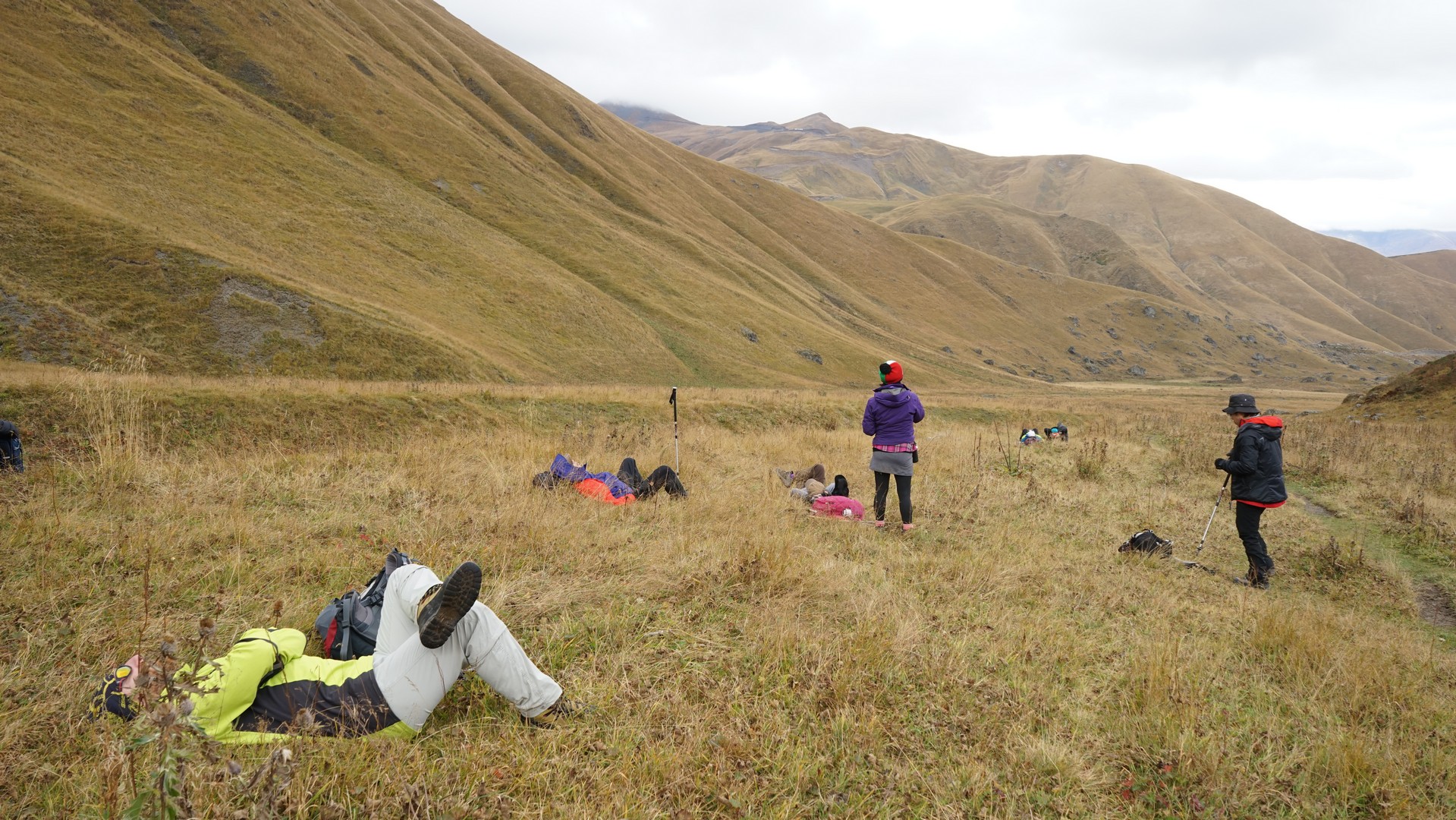 차우키 패스를 넘고나서의 휴식. 가이드가 힘드는지 누워서 휴식.