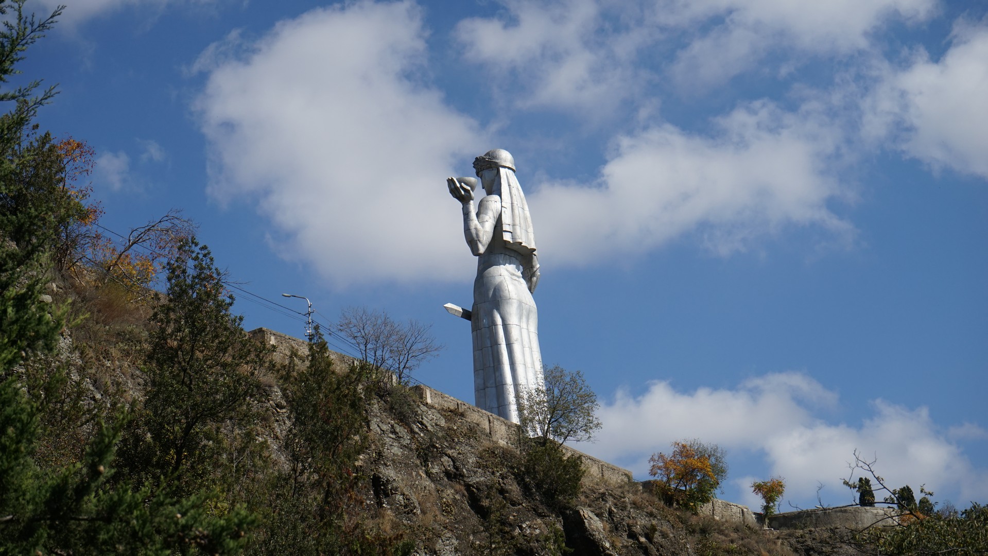 티빌리쉬의 명물 . 조지아 어머니상. 친구에게는 포도주잔을 적에게는 칼을.. 상징하는 모습