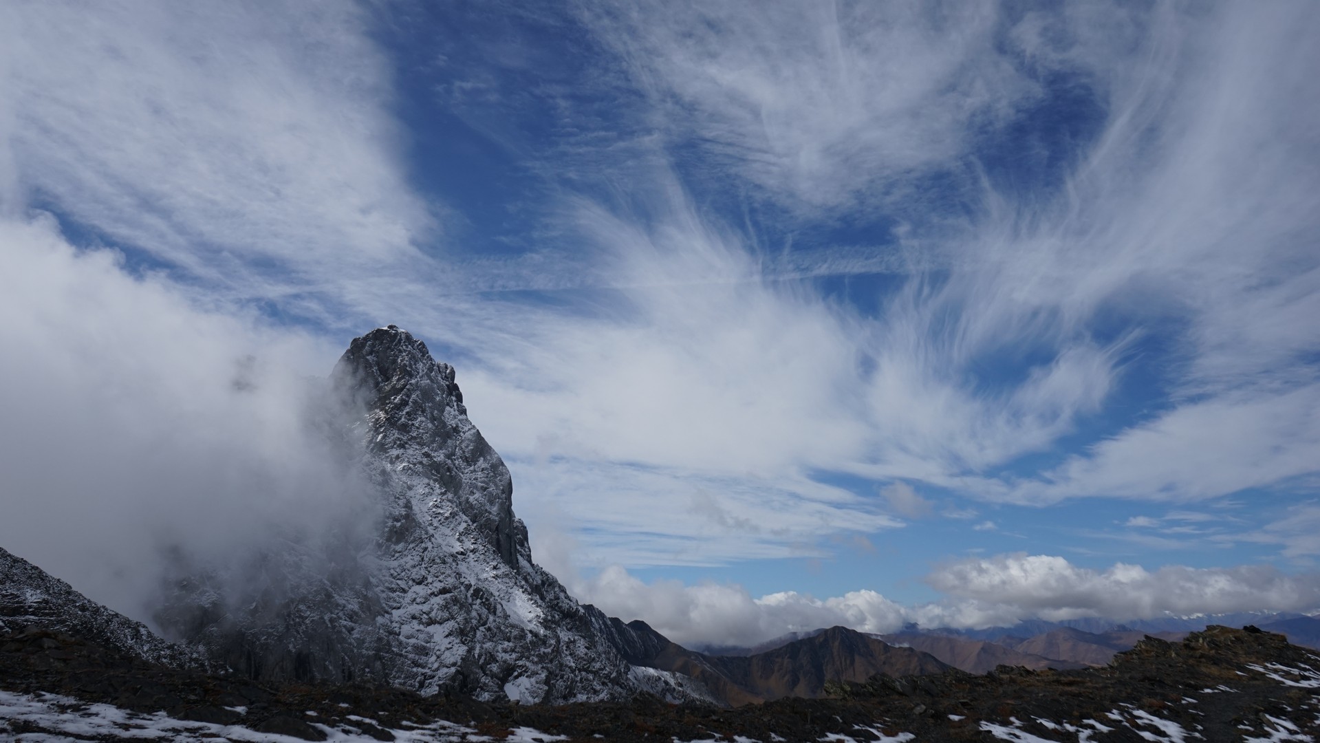 차우키 패스 정상 부근은 새로 내린 눈으로 덥혀 있었다.