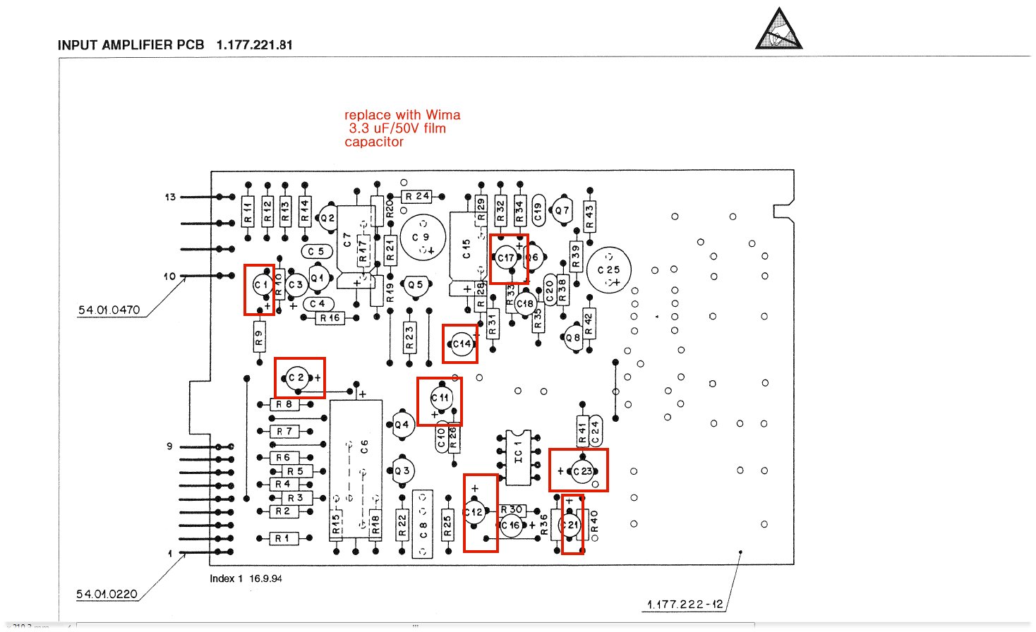 C3,C7,C11,C23,C2,C16 3.3uF/WIMA