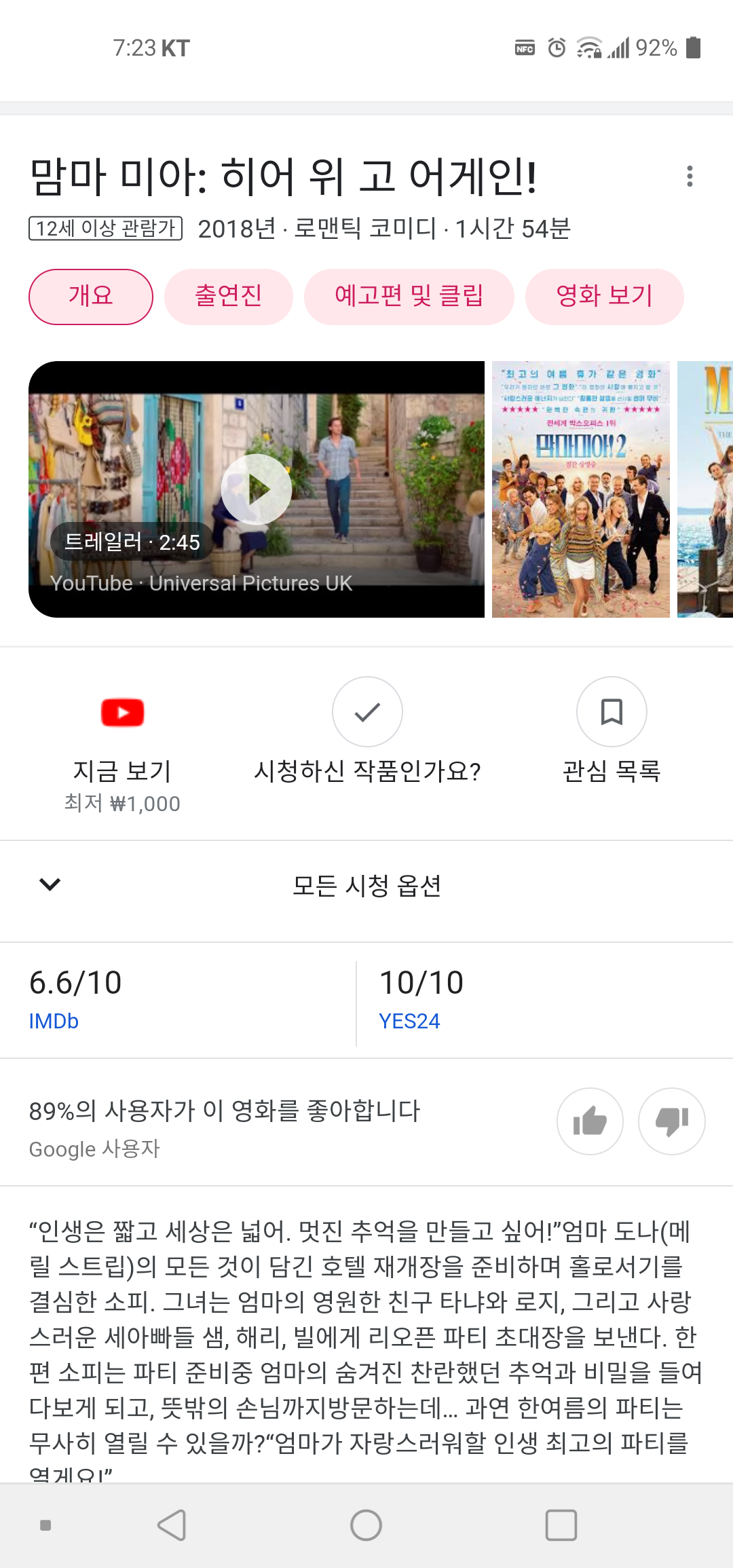 추석 날 본 영화 2편