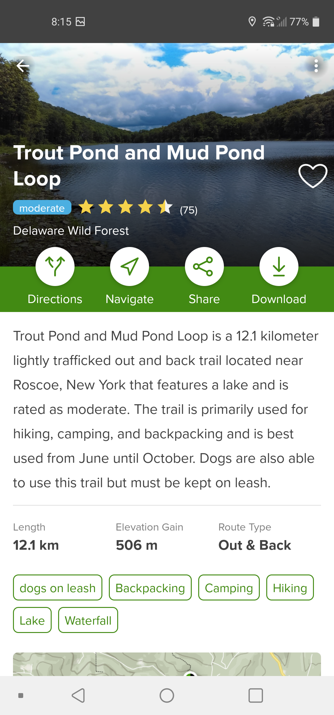 가는 도중 Catskill 주립 공원에 있는 여러 트레킹 코스 중 Russhell 폭포에서 시작 하는 12.1 km 짜리 Trout pond loop trail 을 약 3시간 반 정도 걸었다.