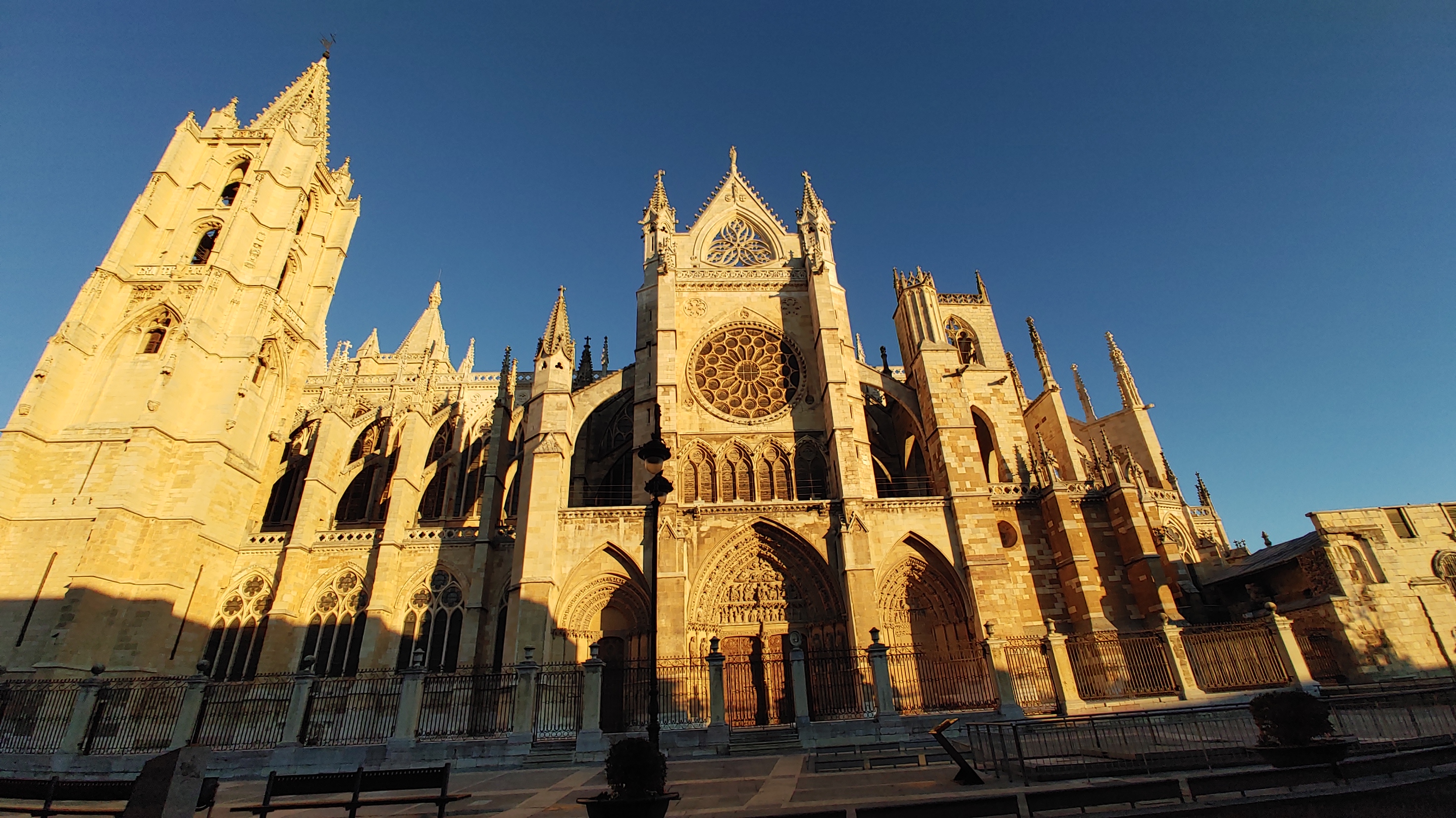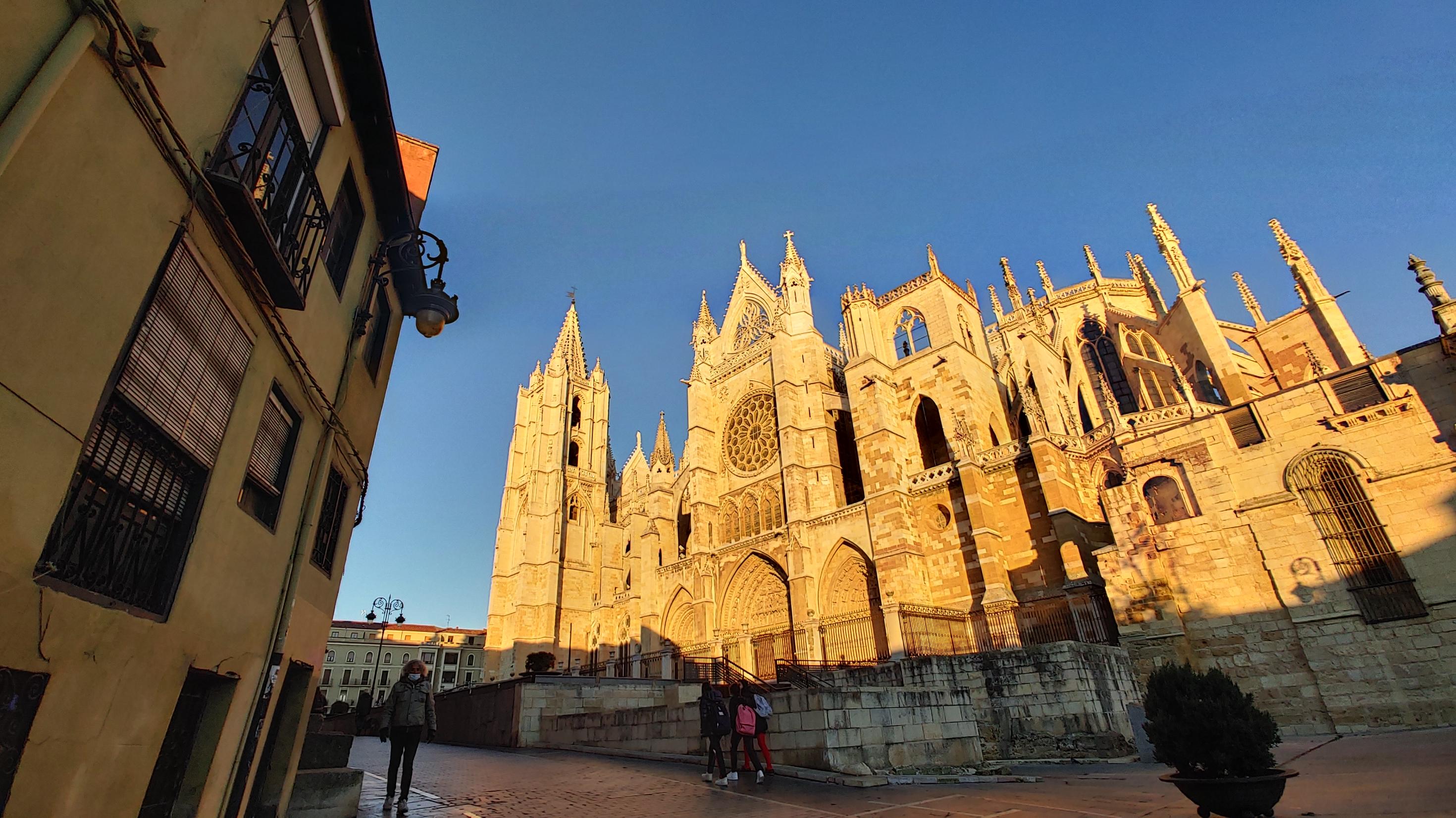 아침 햇살에 황금색으로 빛나는 레온 대성당