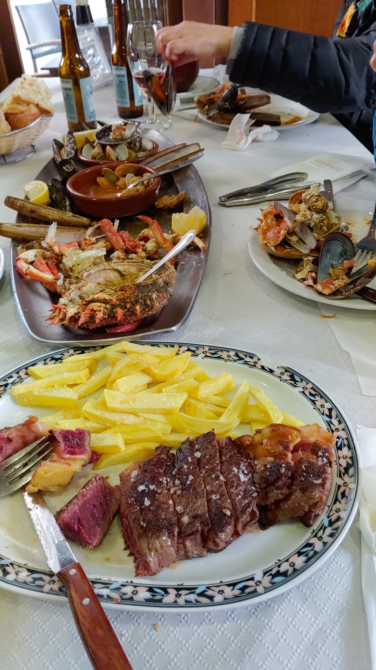 해물 모듬 요리와 육즙이 풍부한 beef steak 등 으로 이른 만찬