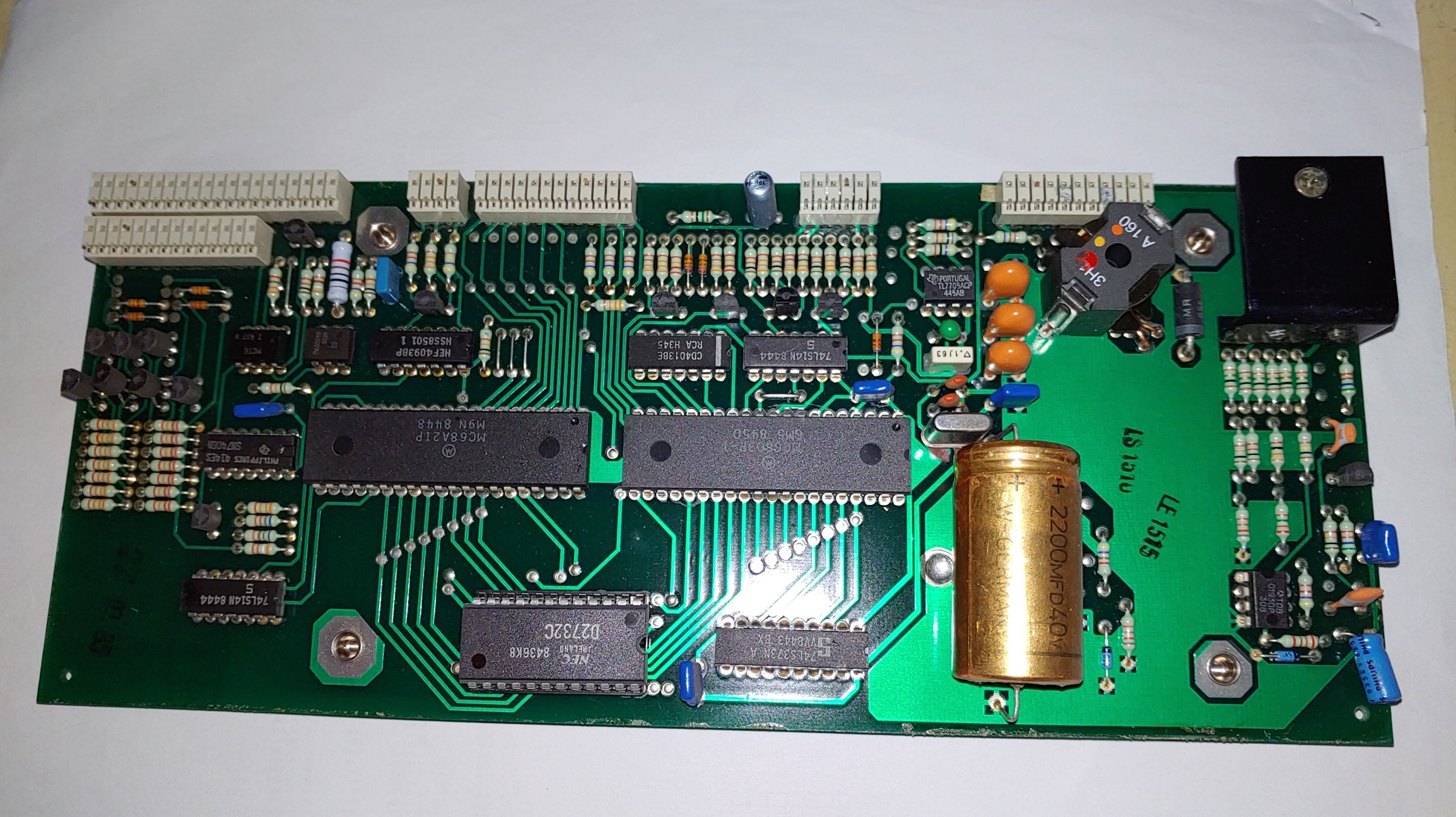우선 tape drive board와 capstan motor control 보드를 떼내어 개조 한 후 장착하여 정상 동작이 되는지를 확인 하였다. 개조는 전해 콘덴서를 신형의 것으로 전부 교체 하였다. 그리고 capstan motor control 보드의l 0.47UF 용량 AC 콘덴서도 교체 하였다. 이 콘덴서는 오랜 기간이 지난 후 표면이 갈라지거나 심지어는 폭팔 하는 경우가 있어 반드시 교체 해야 하는 콘덴서이다.