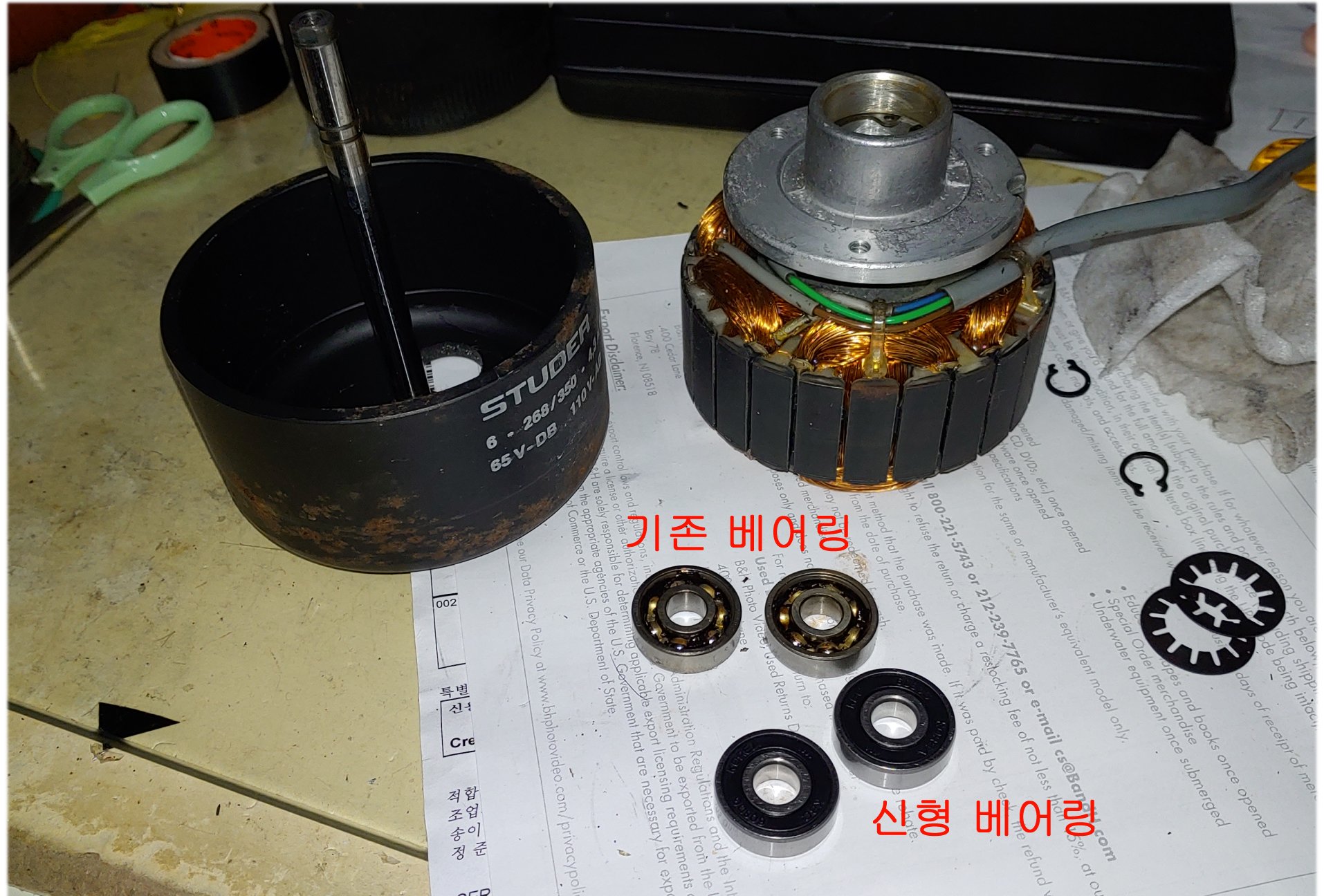 다음은 3개의 모터에 대한 오버홀이다. 모두 해체 한 다음 베어링을 신형으로 교체 하고 해당 윤활유를 도포 한다. 캡스턴 모터는 다른 모터와 다른 PDP65라는 특수 윤활유만을 사용해야 하는 점이 까다롭다.