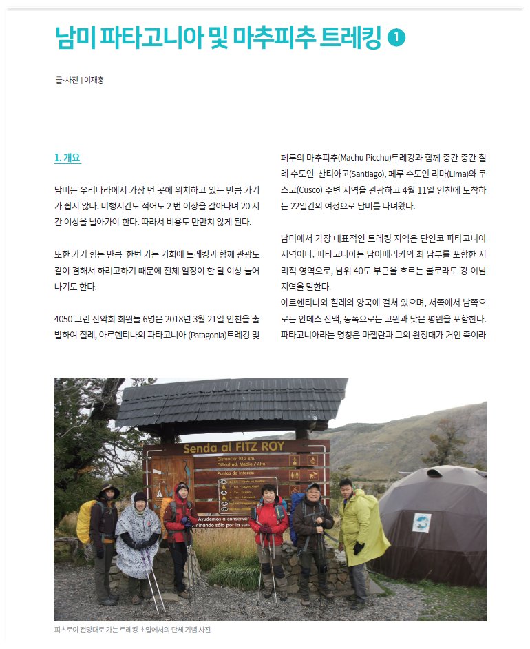 남미 파타고니아 및 마추피추 트레킹 1 편