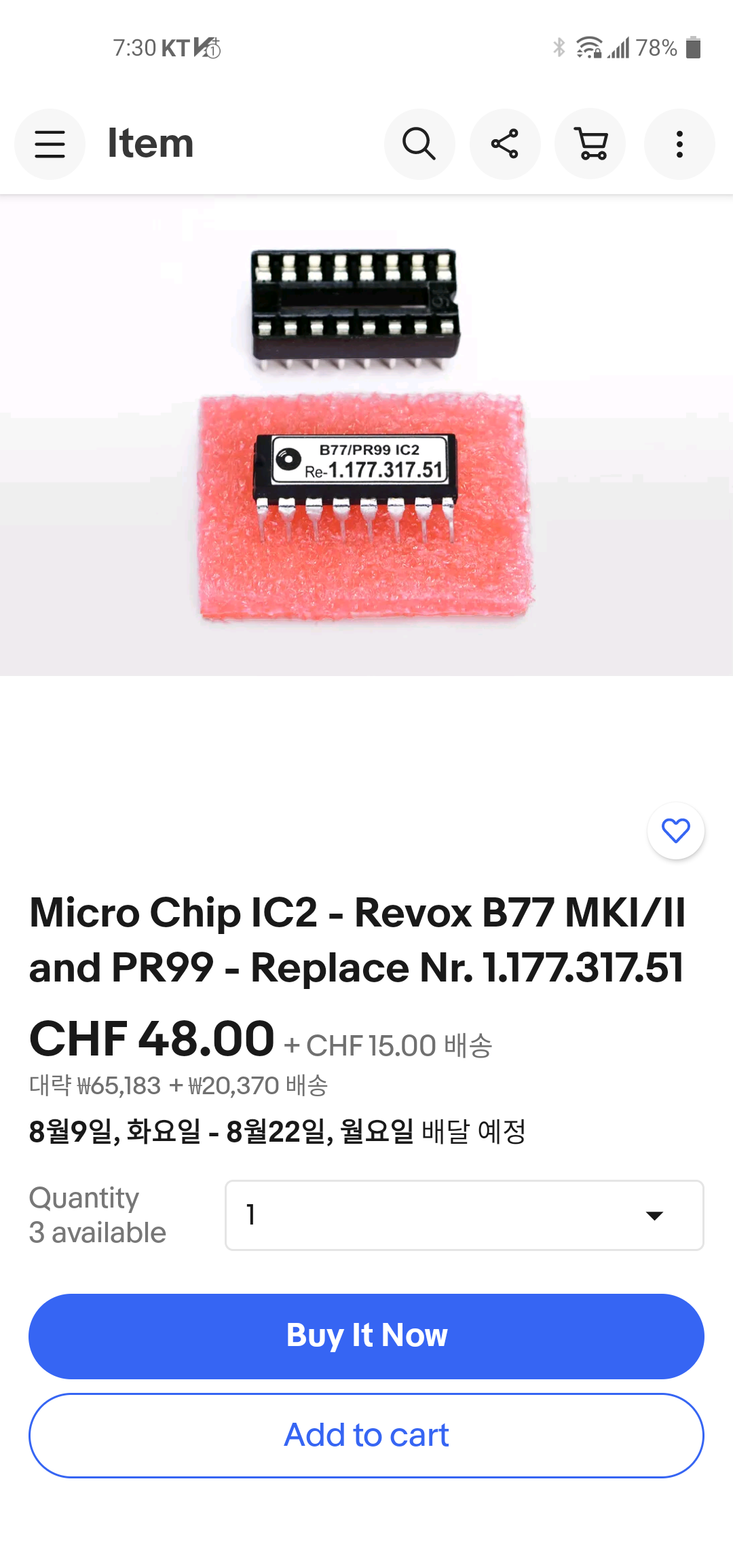 이베이를 통해 구매 하는 경우 약 8만원 정도 든다.