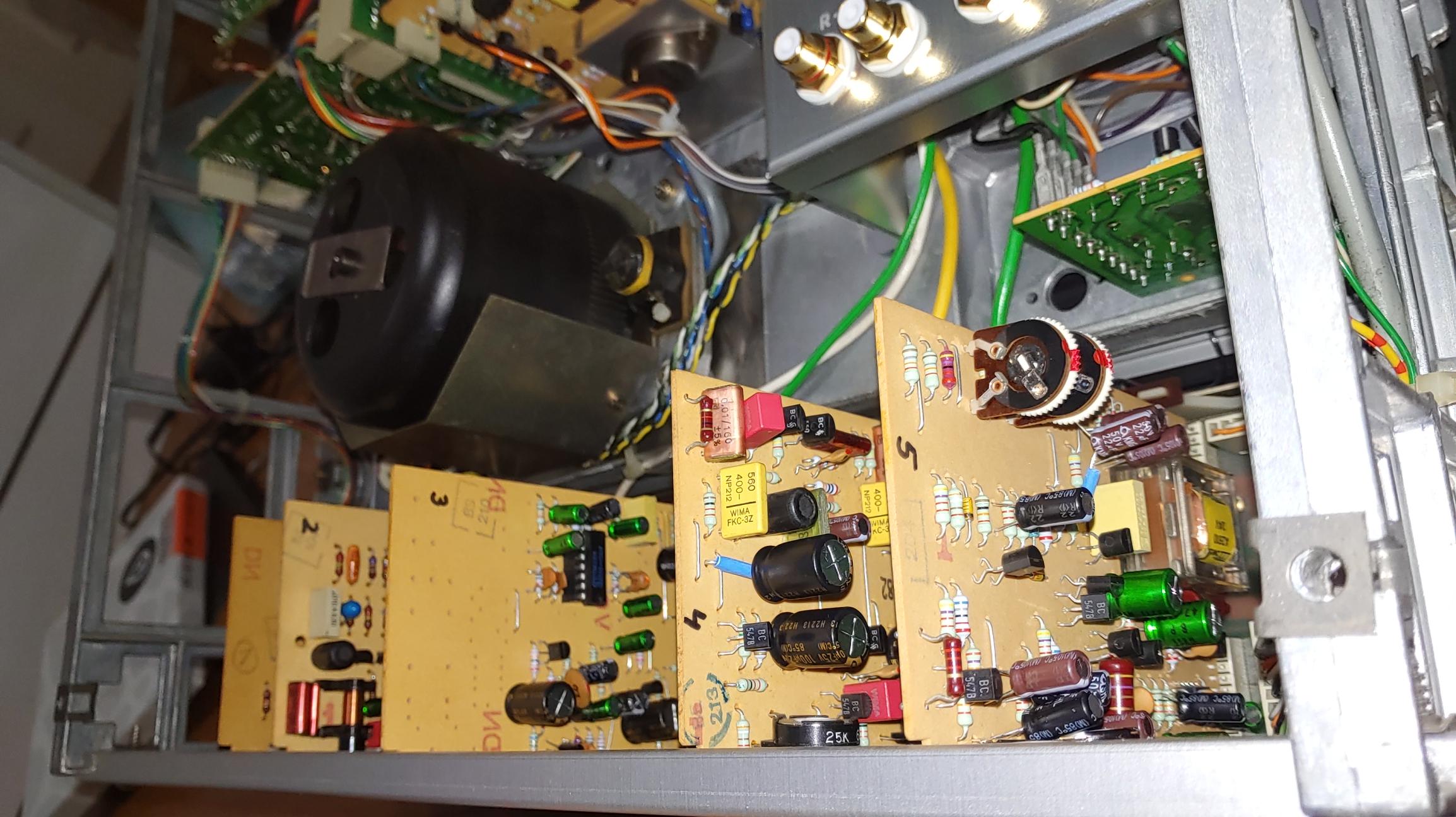 보내온 설명에 따르면 반고정 저항과 전해 콘덴서를 교체 하였다고 하는데 실제 내부를 열어 보니 약 30% 정도만 했고 Audio grade급이 아닌 일반 전해 콘덴서를 사용하였다.