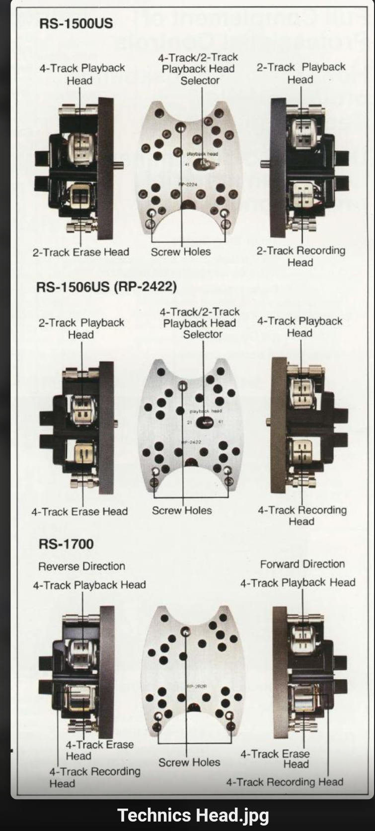 테크닉스의 헤드 블럭은 RP 2224 RP 2422가 있고 4 트랙 양방향용 이 있다.