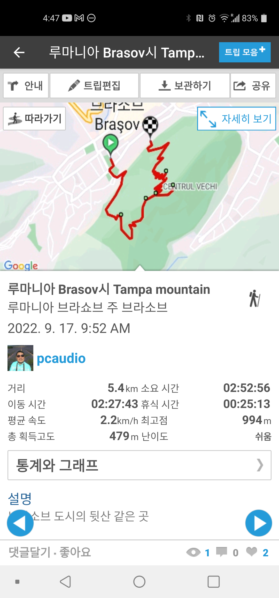 산행 기록을 Rambler에 등록.
