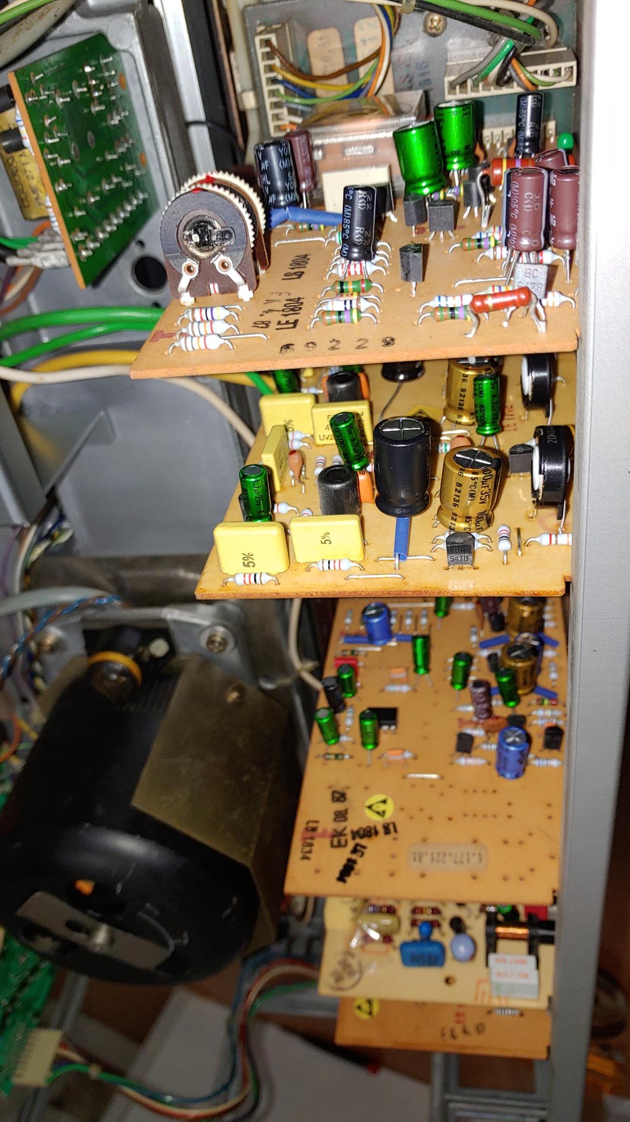 - 2개의 콘트롤 보드와 5개의 오디오 신호 보드의 모든 전해 콘덴서와 반고정 저항에 대해 오디오용 전해 콘덴서 및 고정밀 실드형 반고정 저항 등으로 교체
