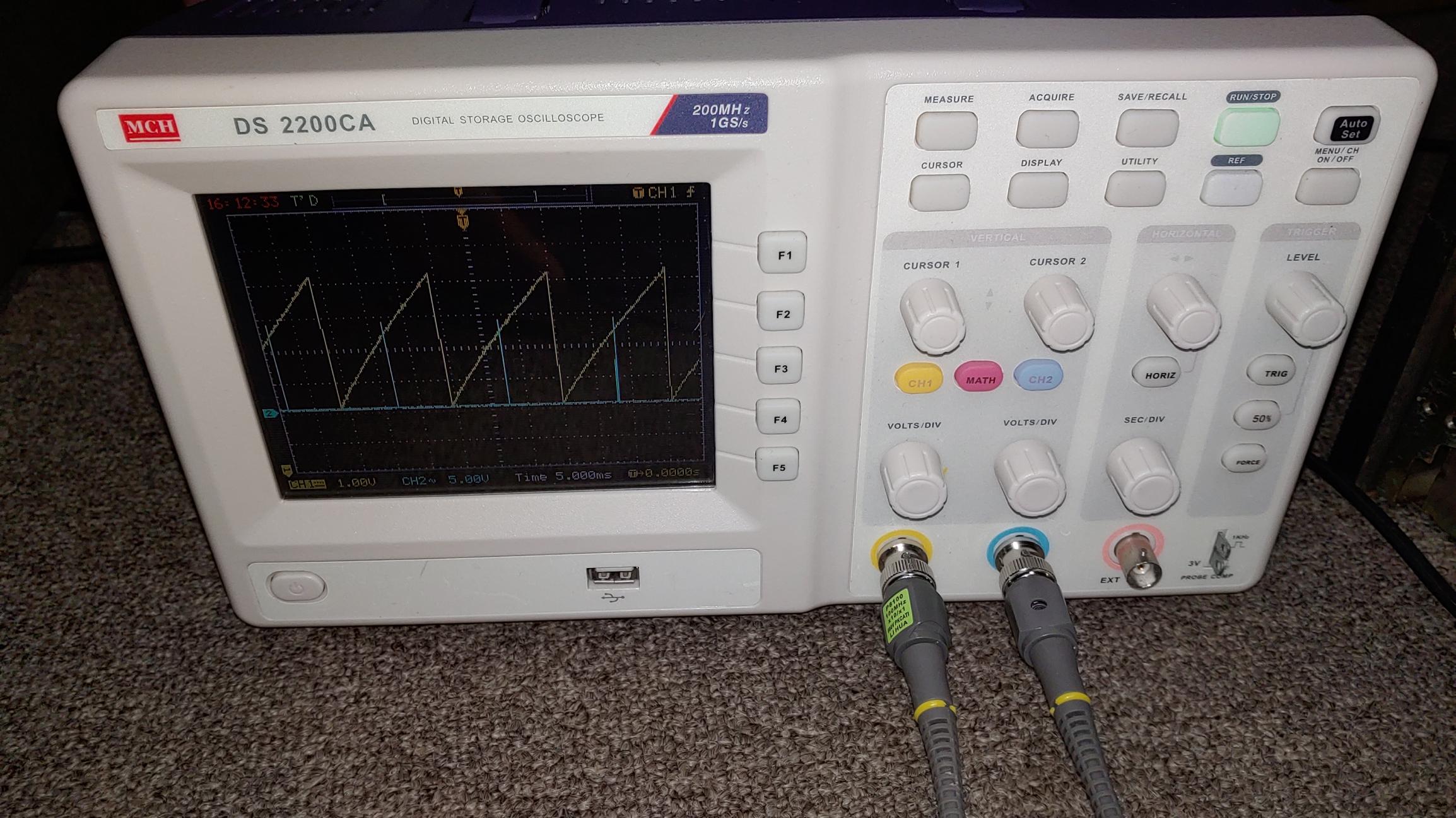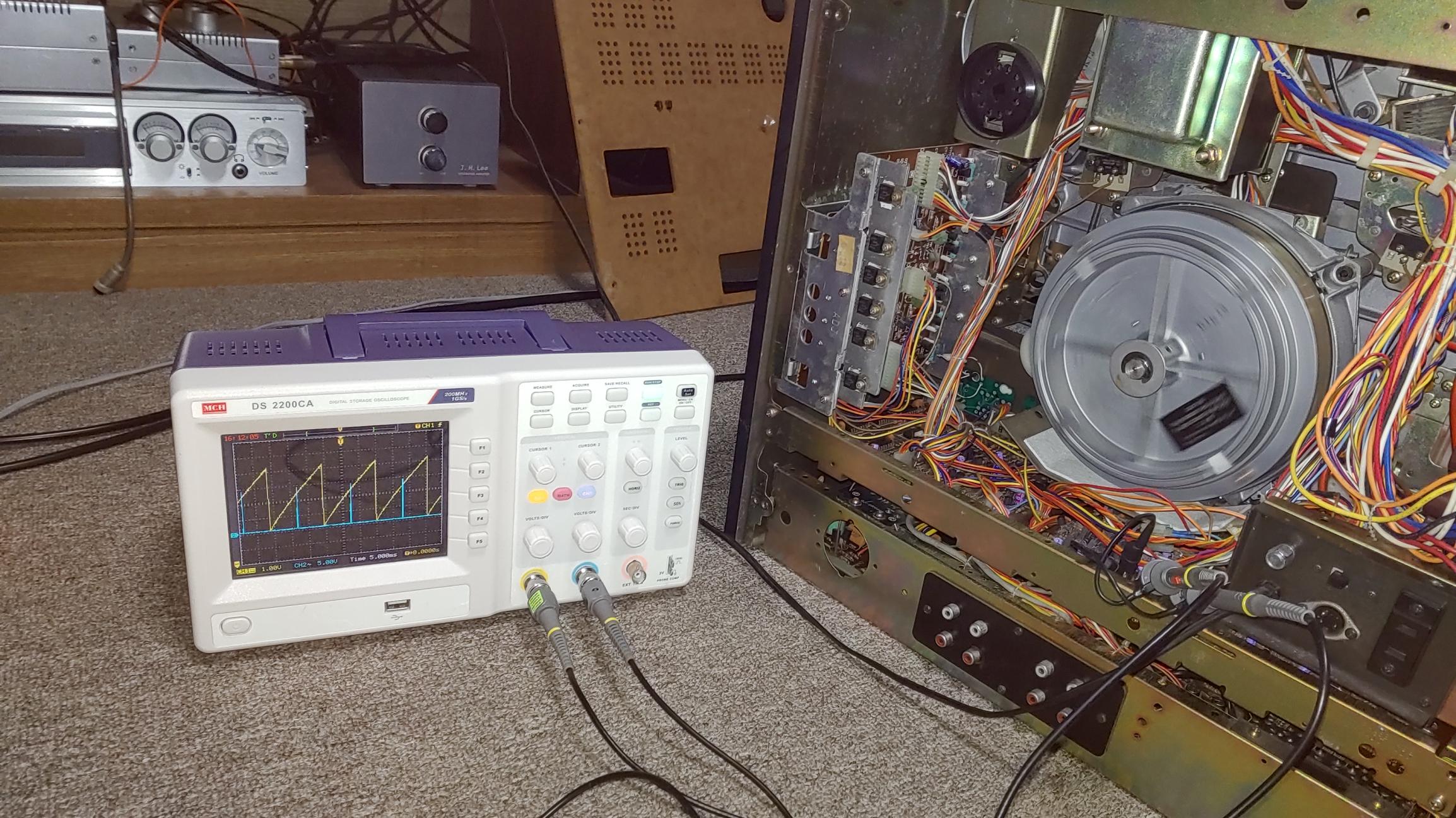 결과는 성공. 밑의 사진과 같이 정확히 속도가 잡힌다. 좀 더 확실한 조정을 위해 2 현상 오실로스코프를 통해 위상을 정확히 맞추었더니 잘 동작한다.
