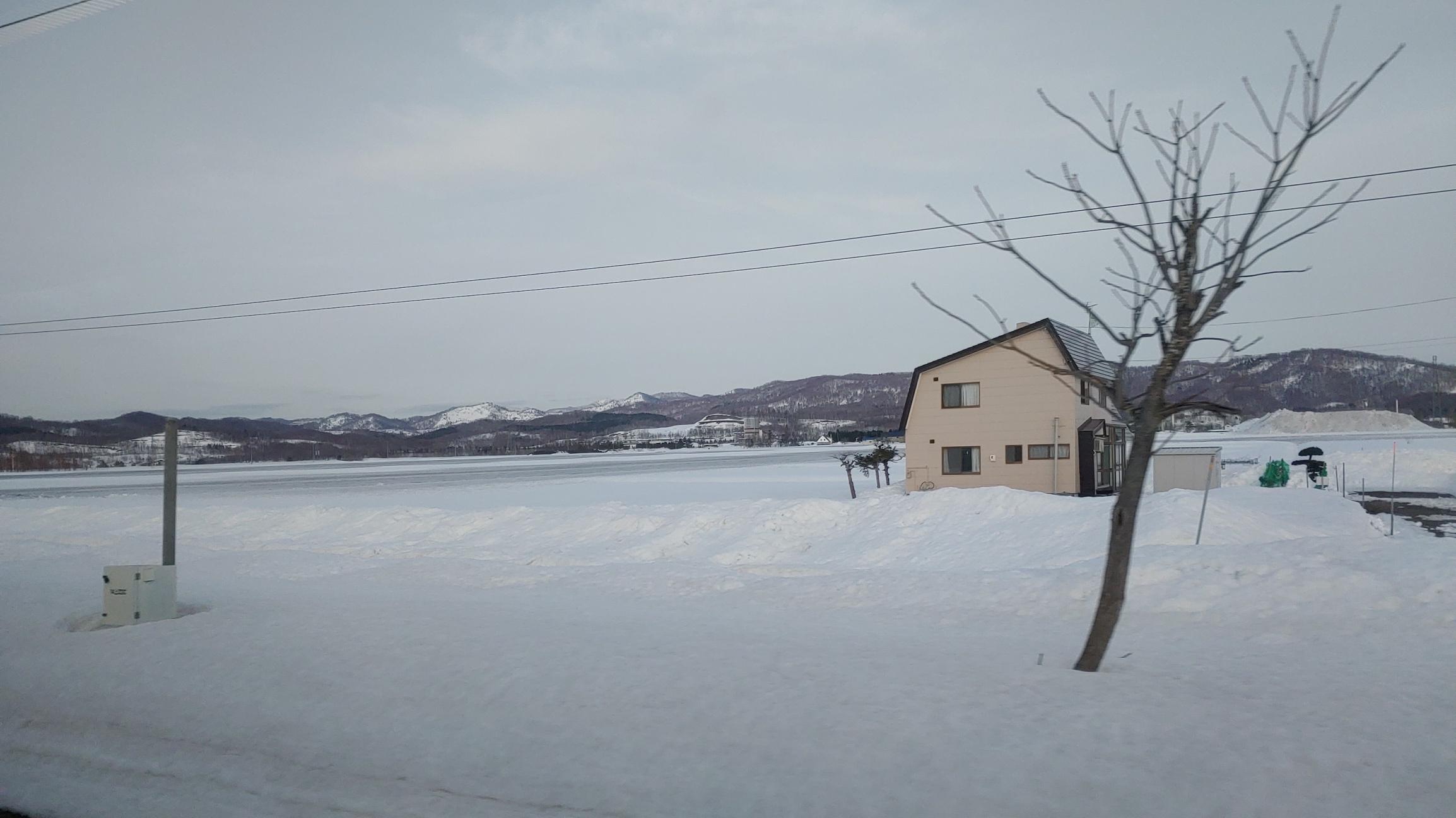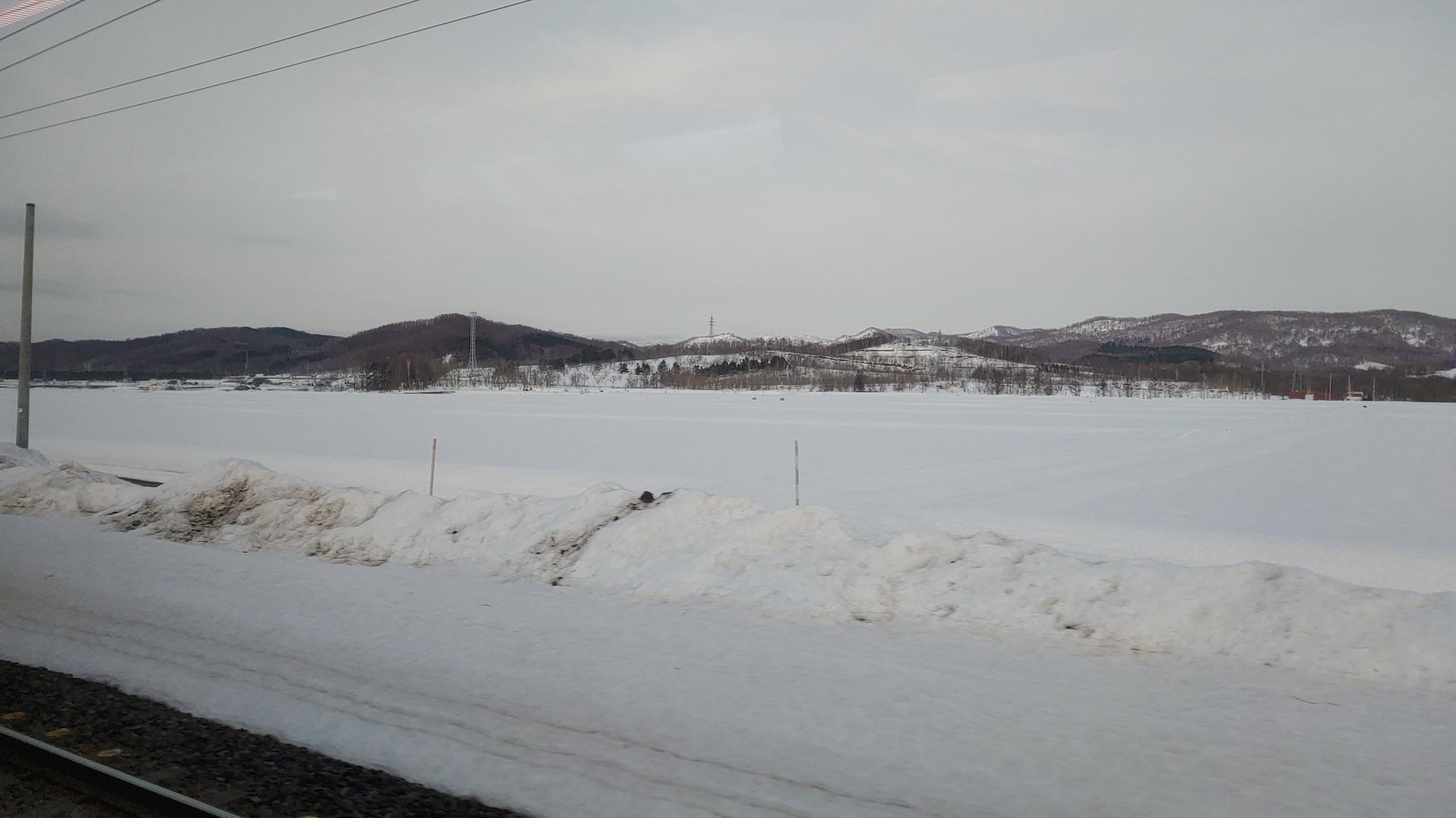 삿뽀로에서 아사히가와 까지 JR로 1시간 반. 양옆이 눈덥힌 평야와 산이 계속된다.
