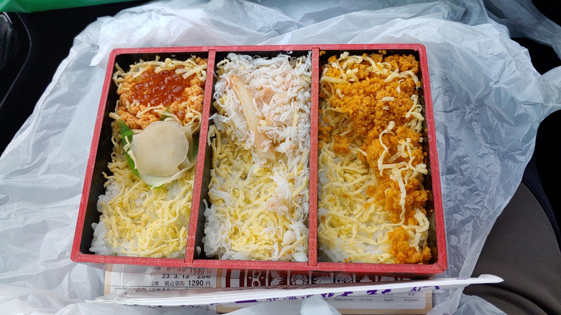 아사히가와 역내 매점에서 에키벤토를 하나씩 골라서..