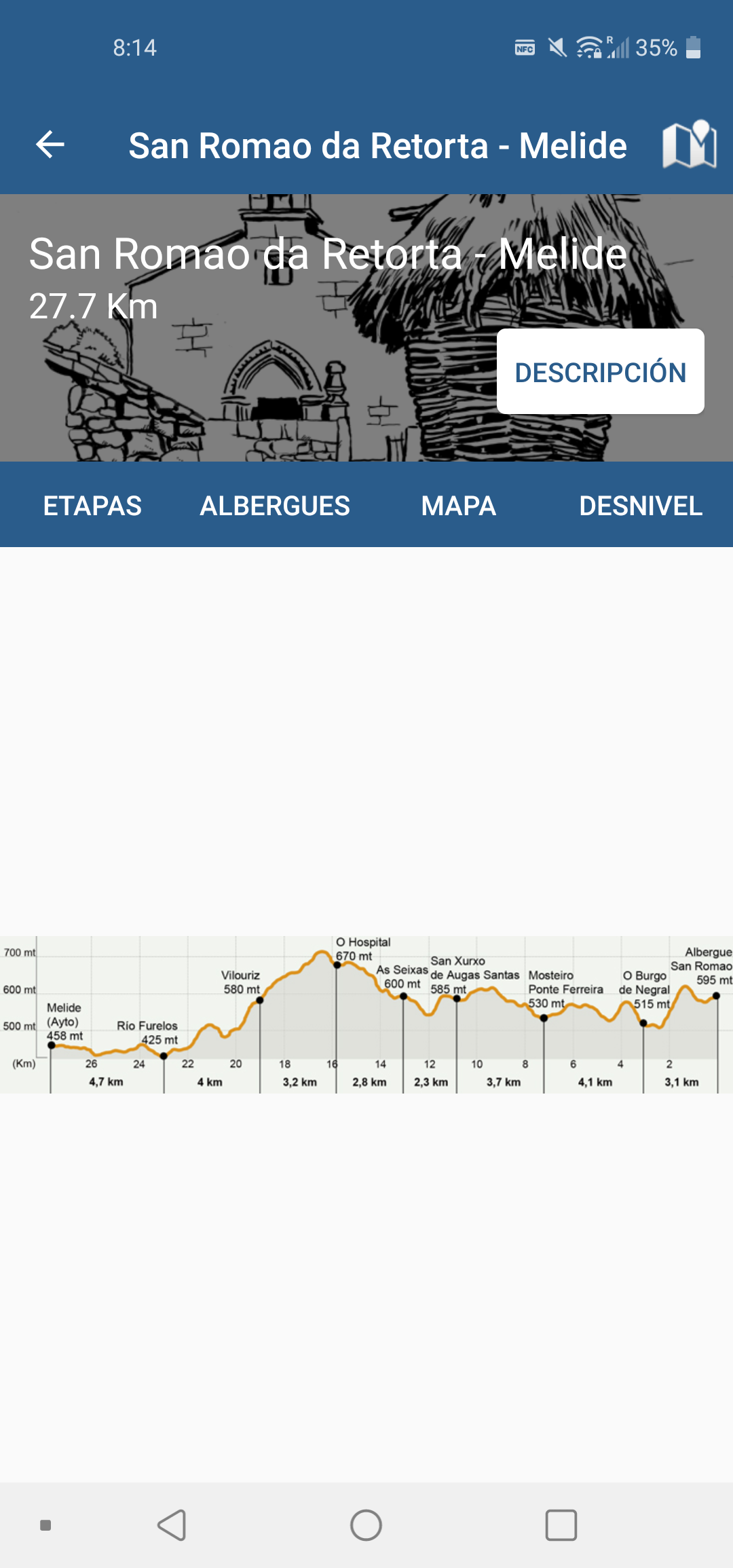 O Buro de Negal에서 Melide 까지 24.7 Km