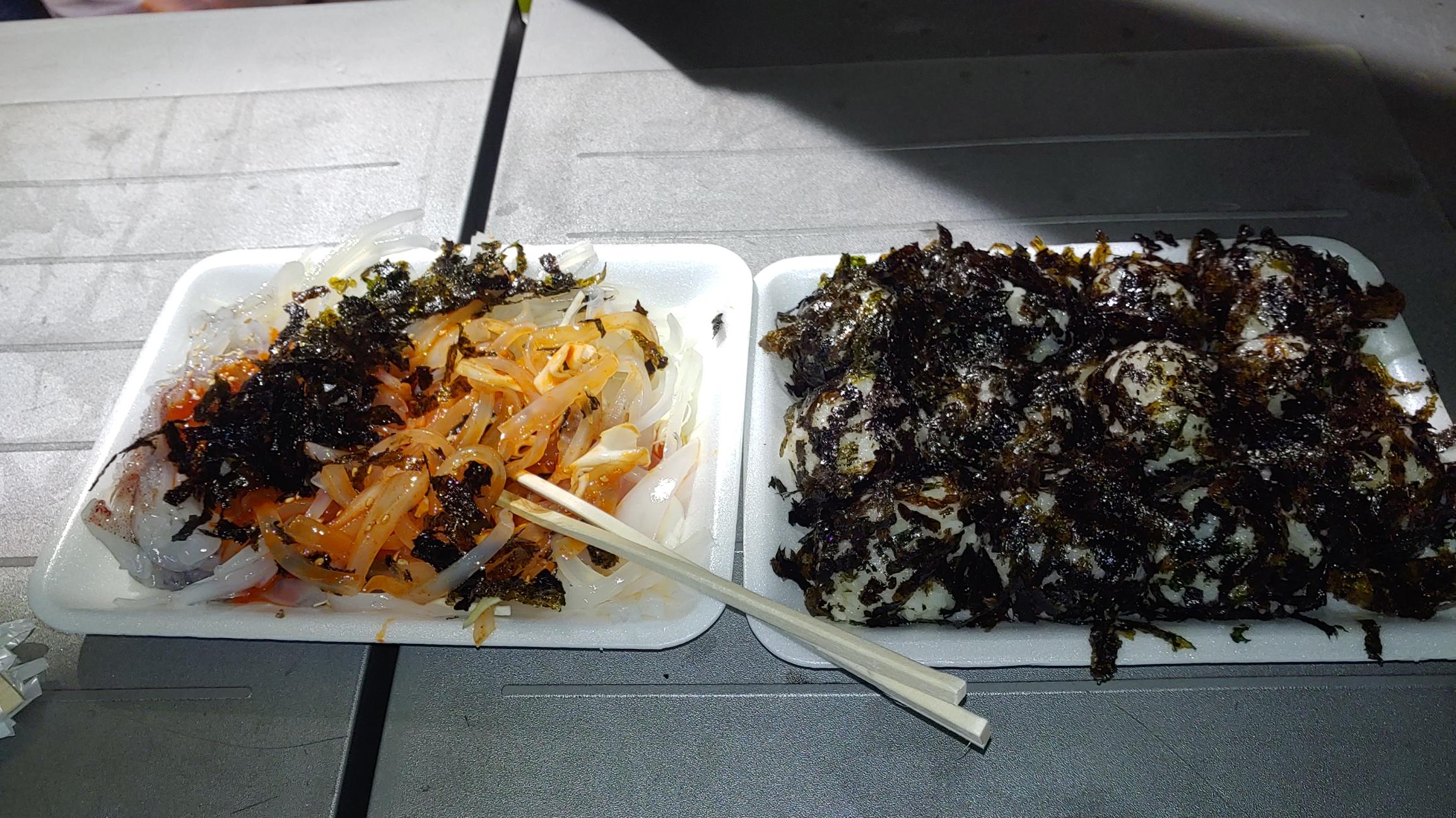밤 11시경 밤참으로 한치회와 김밥