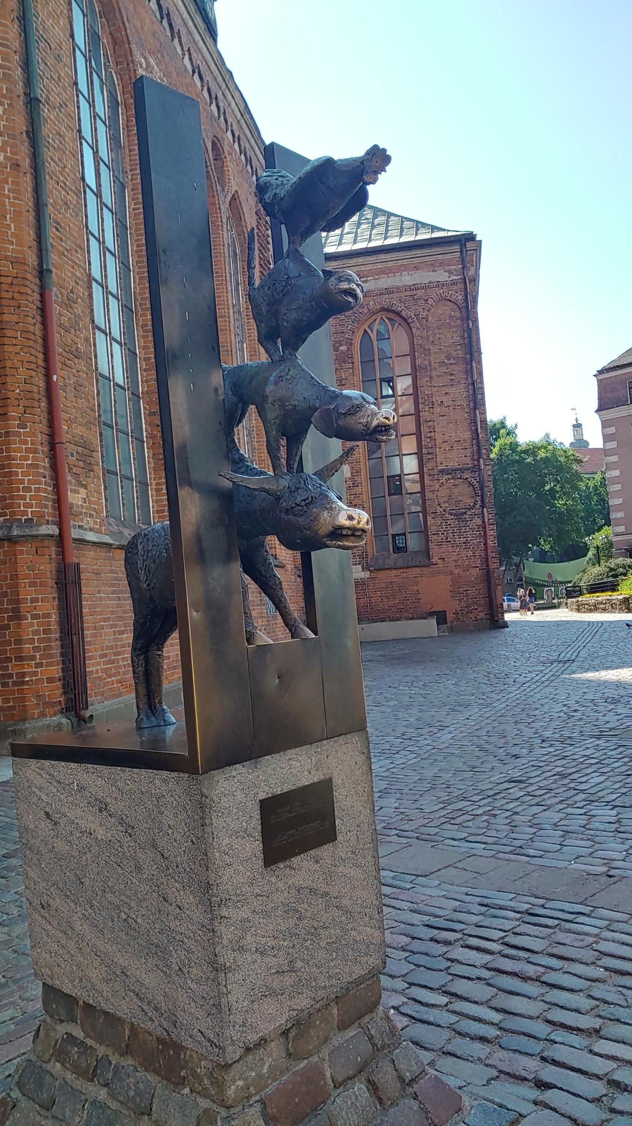 브레멘 시와 자매 결연의 상징으로 받았다는 브레멘 음악대 우화 동상