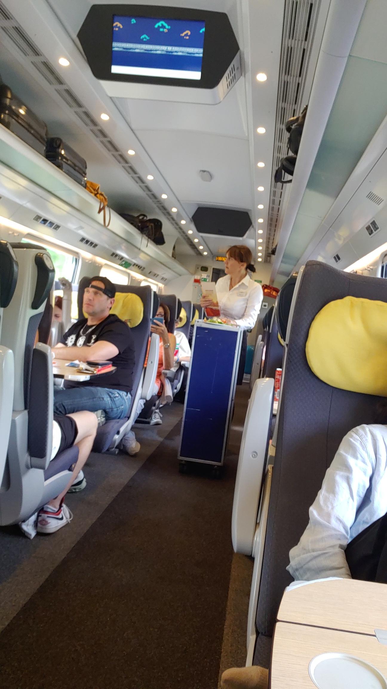 1등석에는 soft drink와 햄버거 또는 샐러드가 제공된다.