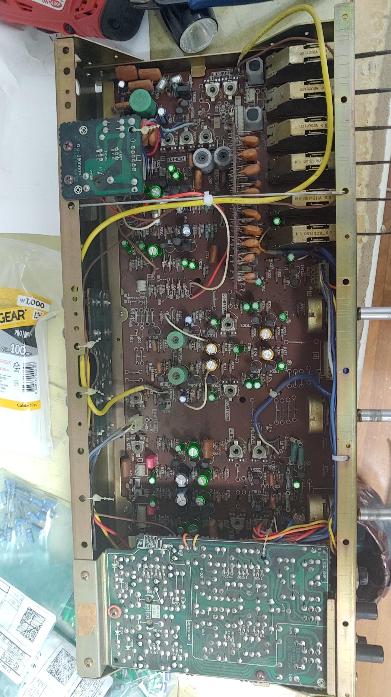 가장 흔하면서도 사소한 고장의 부위인 2트랙과 4 트랙 절환 스위치 부분의 접촉 불량으로 2 트랙 테이프 재생 불량 ( 왼쪽 채널이 잘 나오지 않음 ) 현상과 테이프가 늘어져 재생 및 빠르게 감기, 뒤로 감기 등 동작 스위치를 눌러도 제대로 작동하지 않는 고장 증상을 수리함과 동시에 재생과 녹음에 있어 최고의 음질을 낼 수 있도록 모든 부분에 대한 개조 및 최적화 캘리브레이션을 부탁 하셨다.