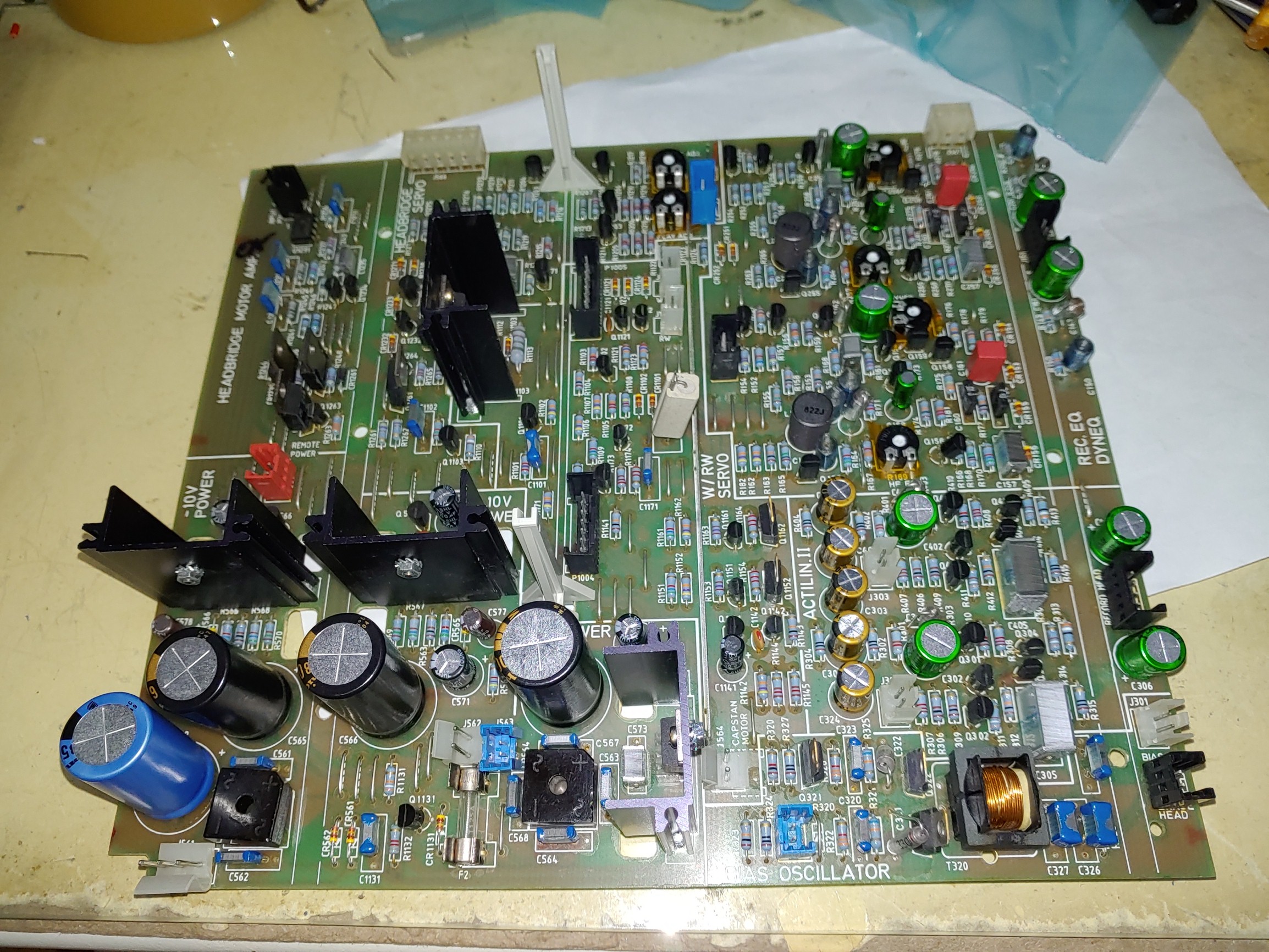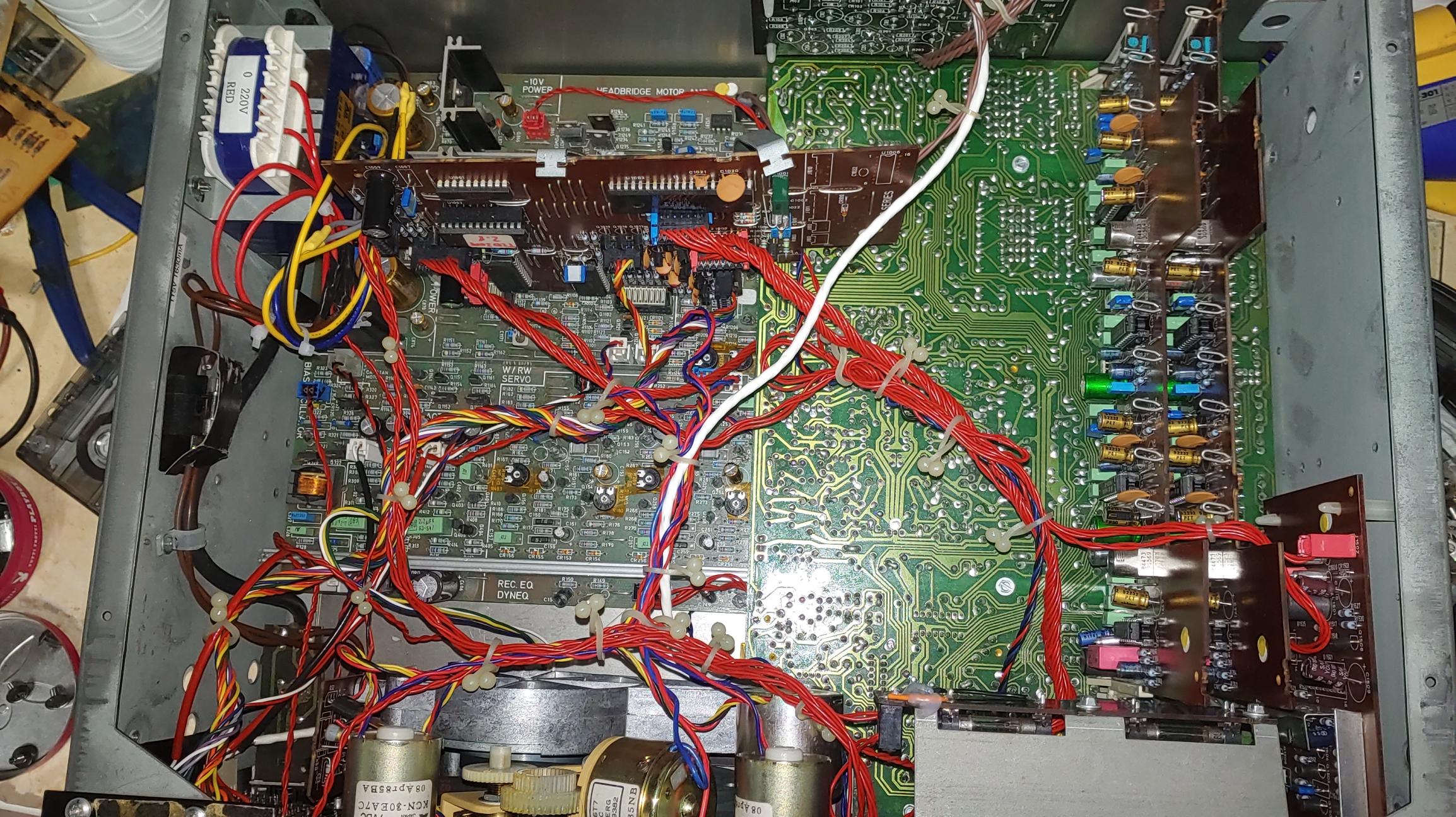 와서 테스트 해 보니 전원을 넣는 순간 휴즈가 나가기를 반복. 전원 트랜스포머 부터 문제가 있음을 알았다. 새로운 트랜스포머로 교체 하고 그간 Recapping 및 주요 오디오 회로에 대한 개조를 거쳐 마지막으로 메커니즘 정비와 캘리브레이션은 후배의 도움을 받아 최종적으로 완전체로 탄생 했다.