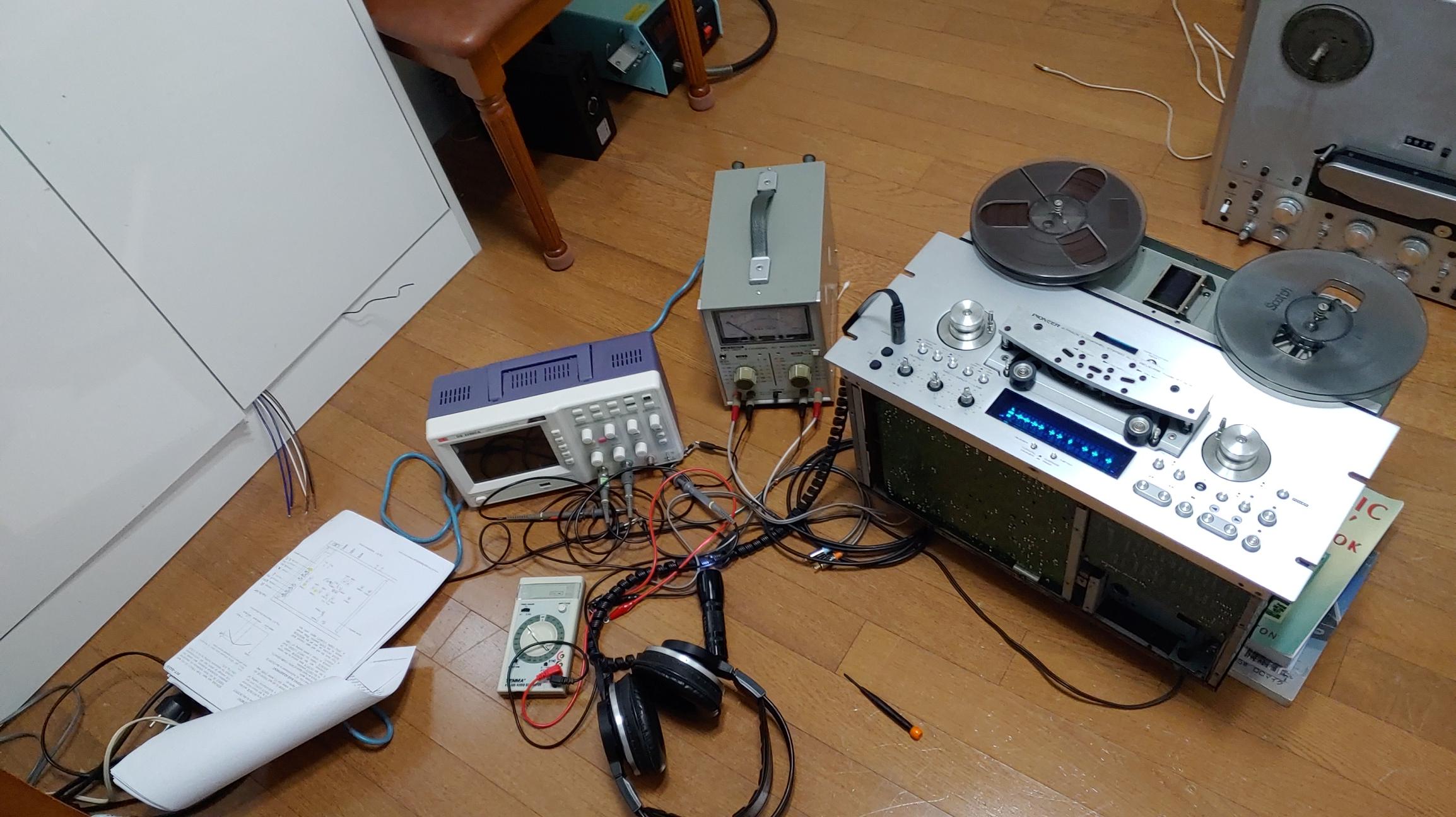 헤드 블럭에 재생 작업이 끝난 헤드를 장착하고 오실로스코프와 밀리 볼트 미터, 주파수 발진기 및 테스트 테이프를 사용하여 정교하게 헤드 높이, 틸트 및 아지무스 조정 작업을 한 다음 다시 전체적인 순방향 재생과 역방향 재생의 레벨, 고역 주파수 특성 조정을 하고 이를 기초로 다시 녹음 부분에 대한 레벨 및 전체적인 주파수 특성 체크 및 조정 작업을 했다.
