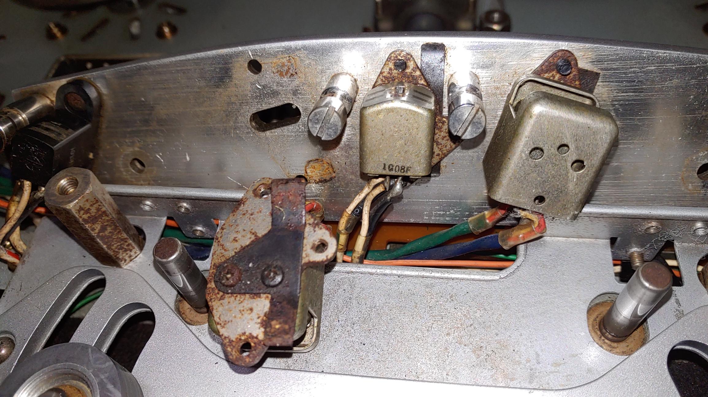 역방향 재생 헤드 작업을 위해 헤드 부분 해체. 녹도 많이 쓸어 있고 오염도 심하다. 아세톤과 알콜로 세척을 먼저 해야 했다.