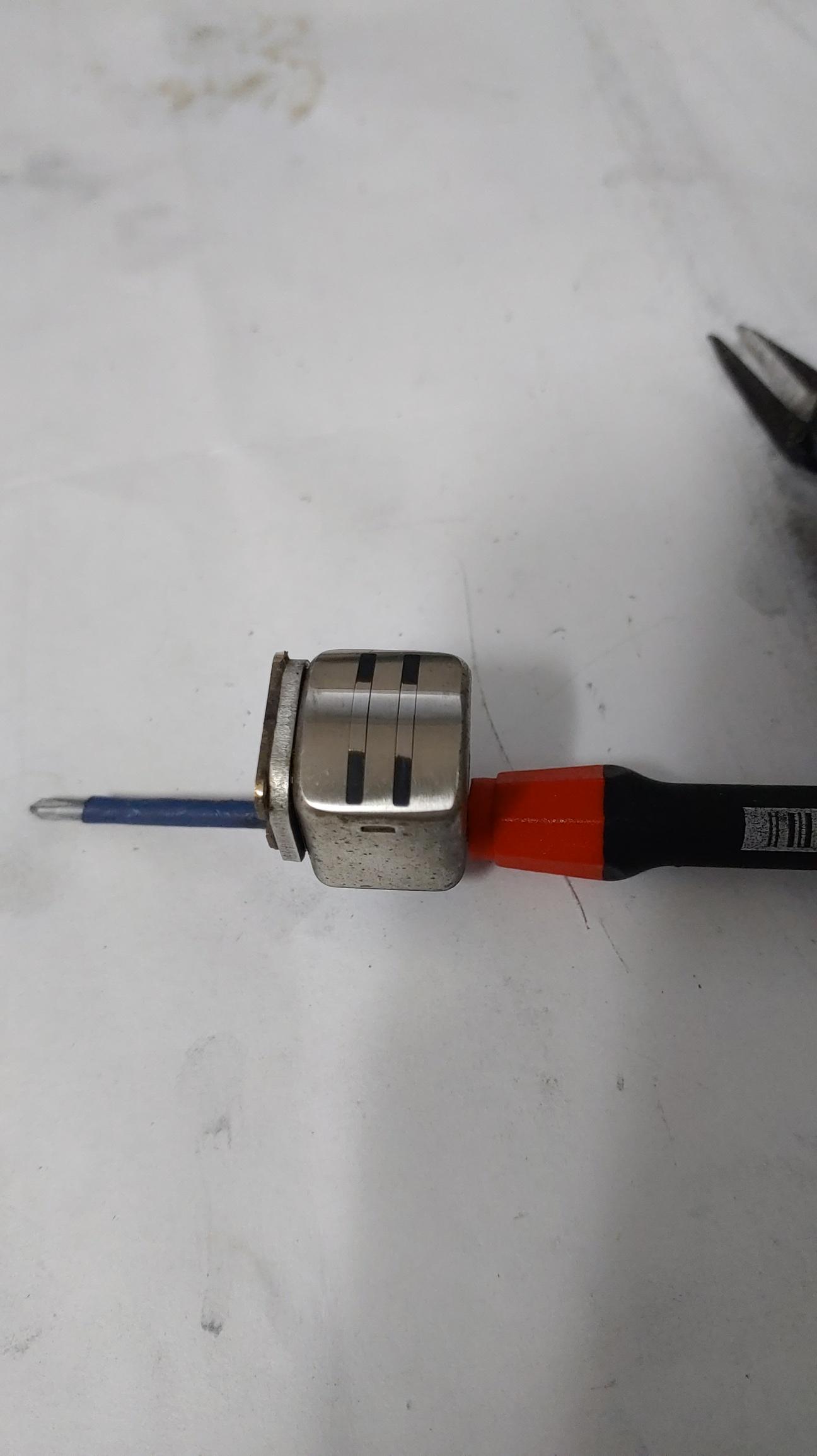 3.5mm 정도 닳아 헤드가 평평해진 모습. 고역 주파수 재생및 녹음이 상당한 영향을 주고 있었다.