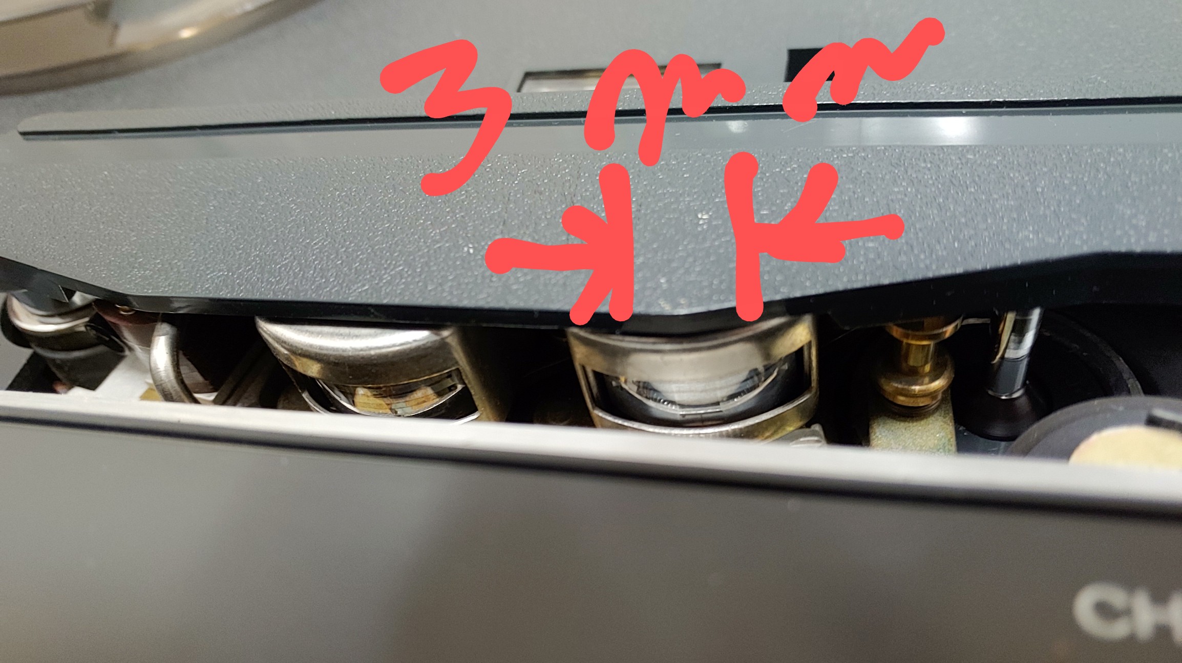 헤드의 마모 상태가 교체 고려 시점인 평탄해진 부분의 길이가 3mm 정도 되어 신픔 헤드나 헤드 재생 작업인 relapping을 해야 하나 7 1/2 ips 속도에서는 recording board의 캘리브레이션으로 오디오 신호 대역에서 대체로 양호한 주파수 특성이 얻어진 것을 확인 하고 그대로 사용하기로 함.