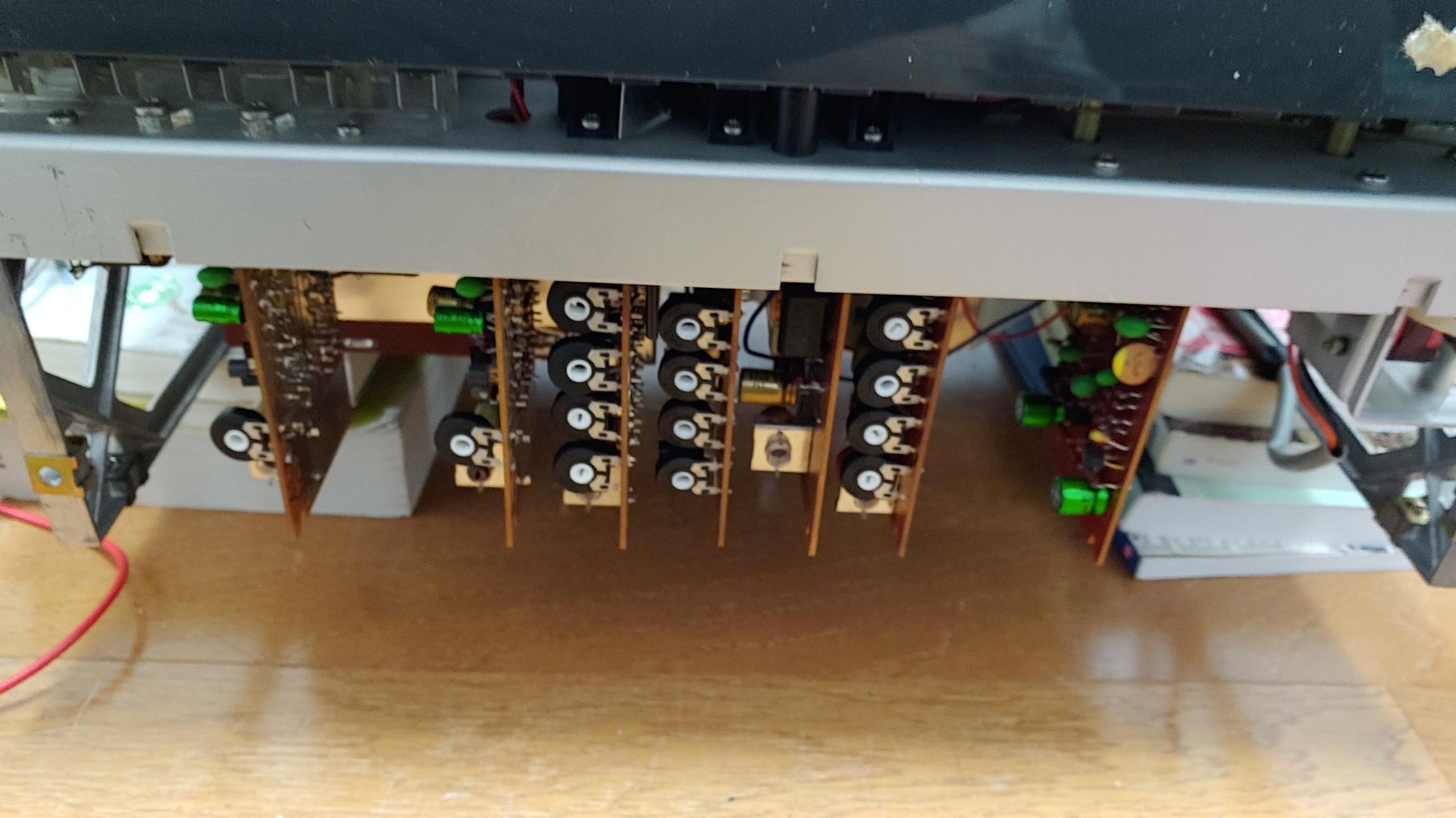 오디오 신호 계통의 보드는 일본 Nichicon사의 Muse 콘덴서 등 오디오급 콘덴서로 전해 콘덴서를 전량 교체 하고 부식이 많이 진행 된 반고정 저항도 밀폐형으로 모두 교체 했다.