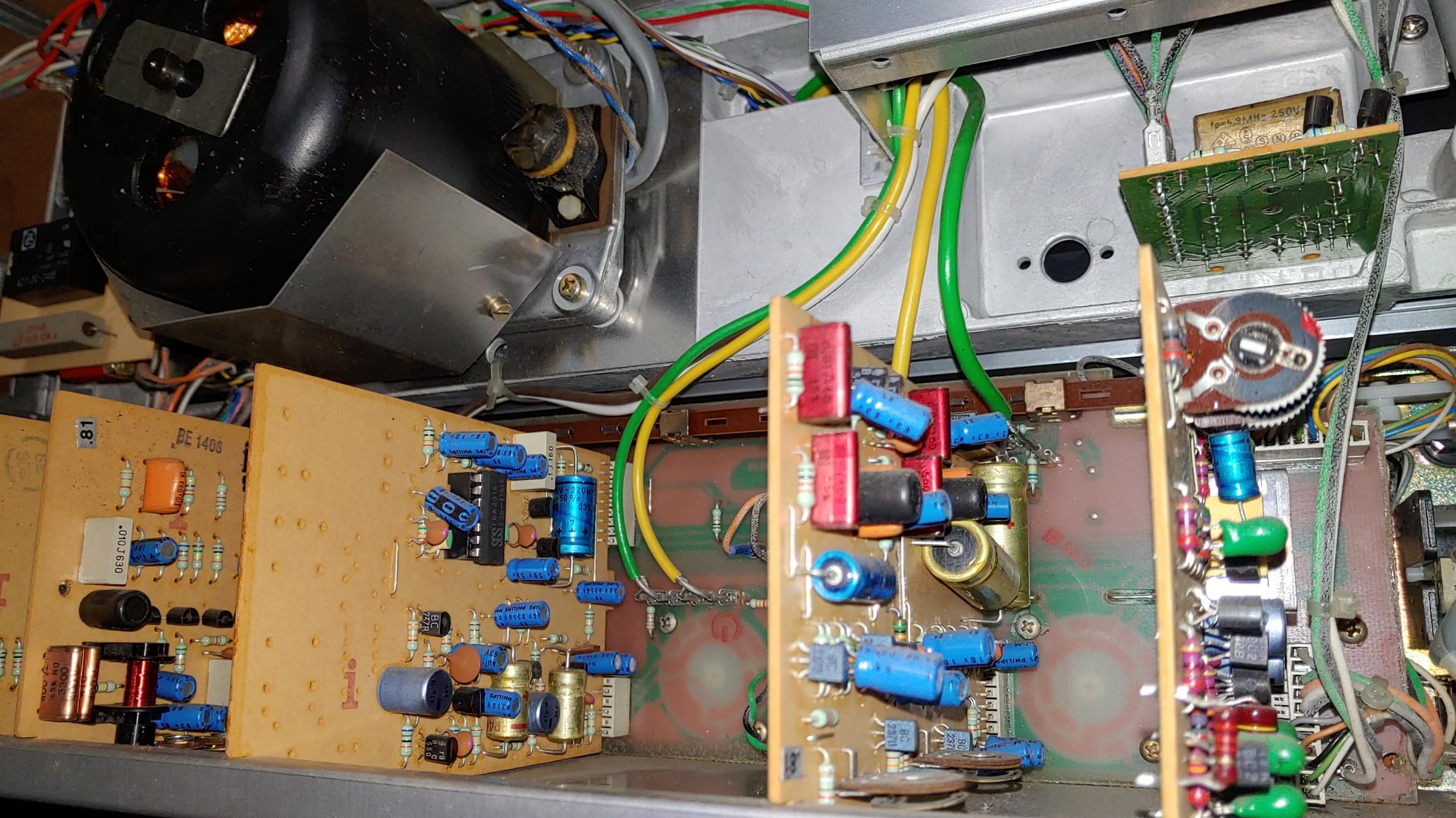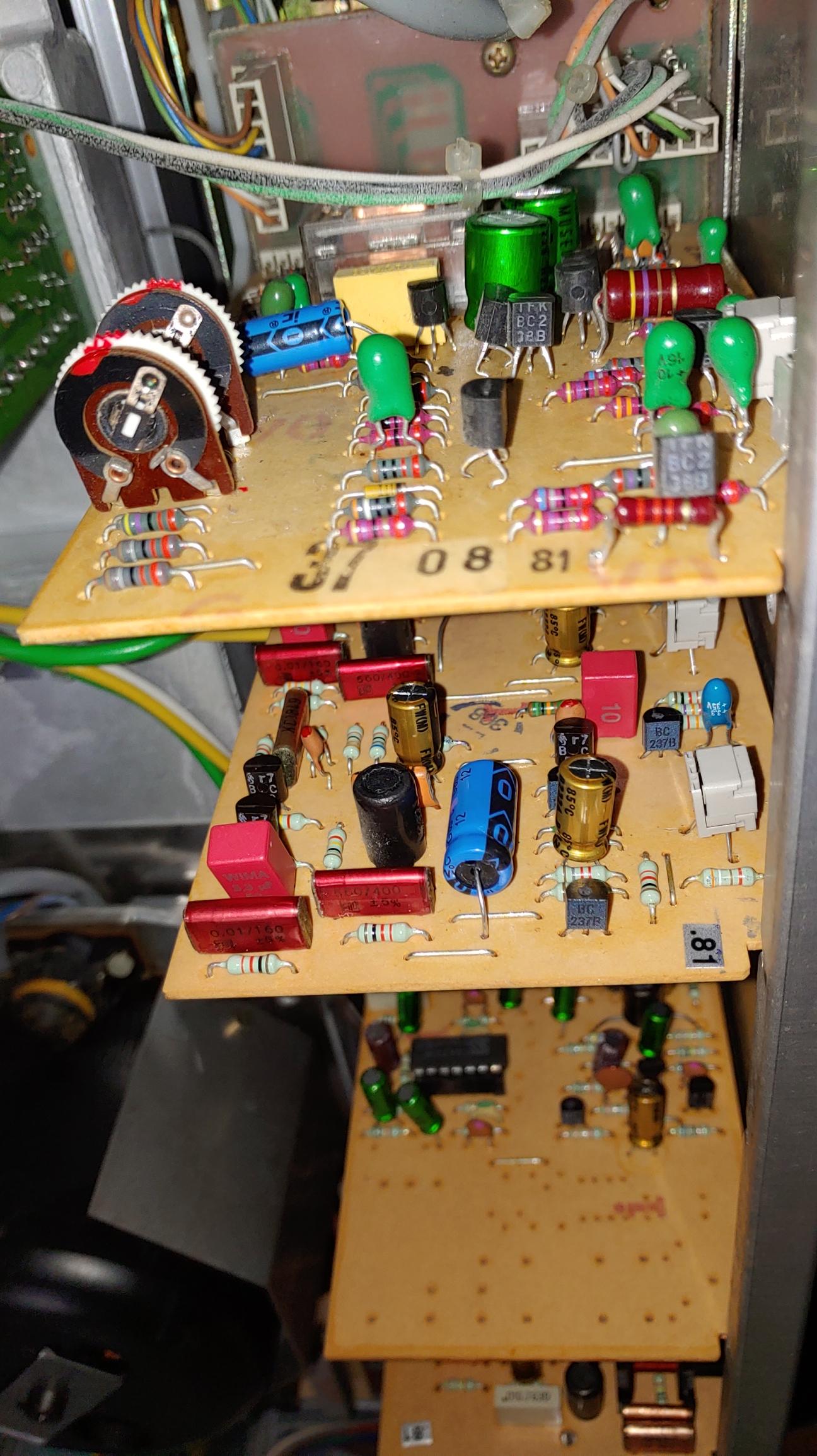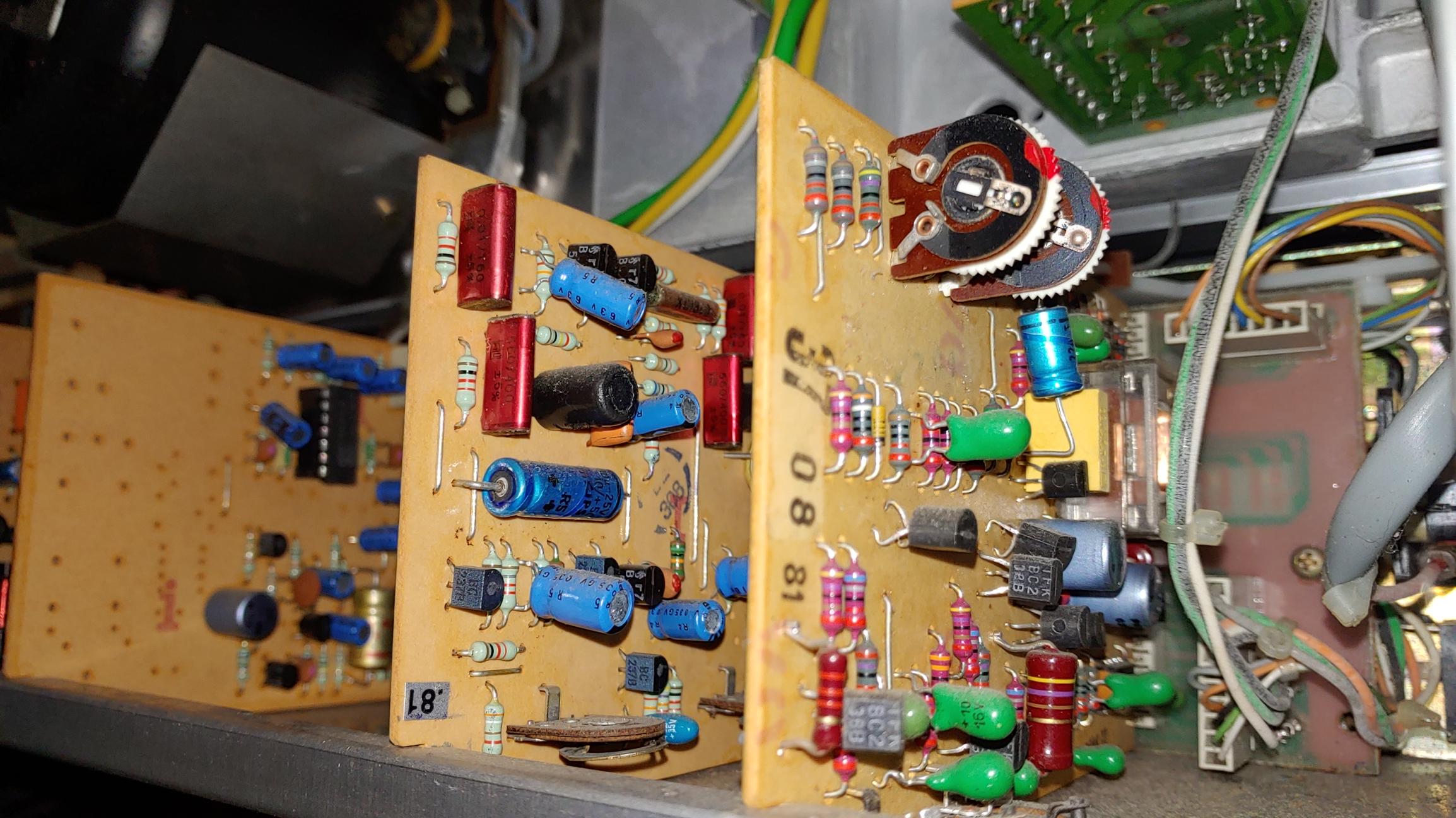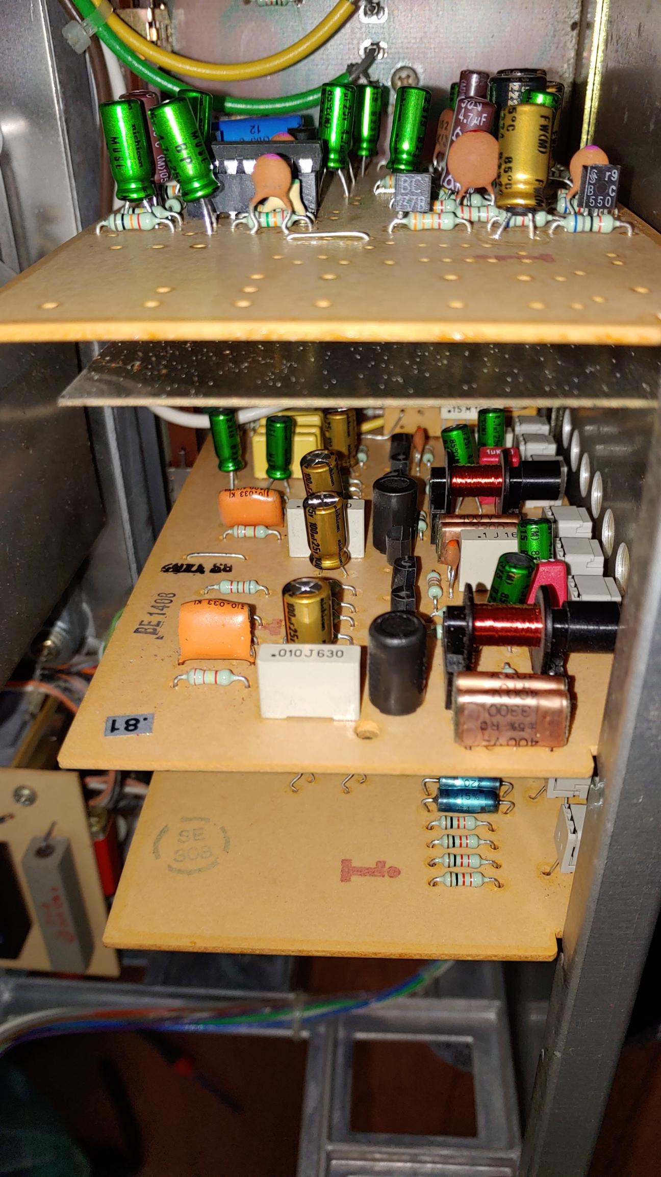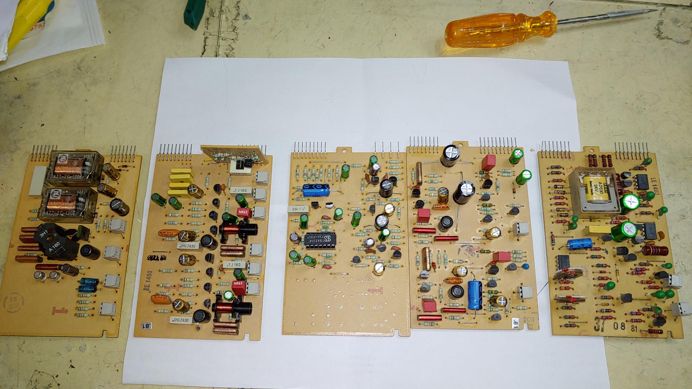 오디오 단의 5 개 보드에 대한 recapping 및 업 그레이드 완료 후 모습