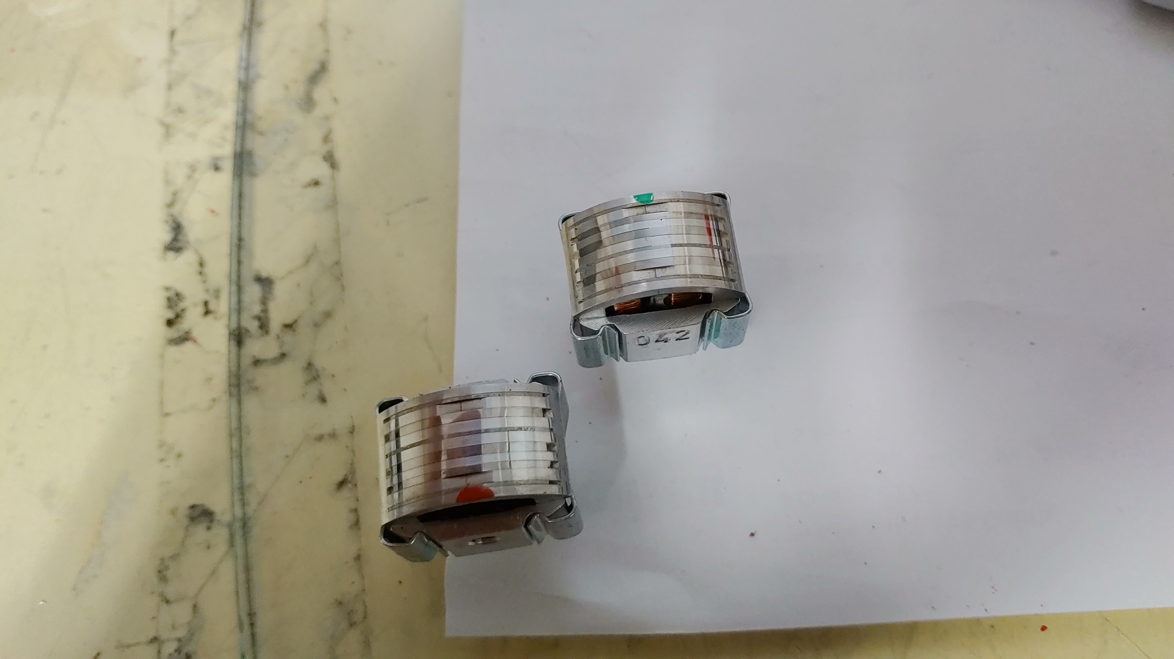 헤드의 마모가 상당히 진행된데다가 헤드의 닳음이 좌, 우가 다르다. 이는 헤드의 Azimuthe가 잘못 조정된 상태로 오래 사용했음을 암시 한다. 전번에 녹음한 곡의 일부가 살짝 들리는 증상이 있다는 것이 이해 된다. 이렇게 된 경우 100% 그런 증상이 나타나기 때문이다.