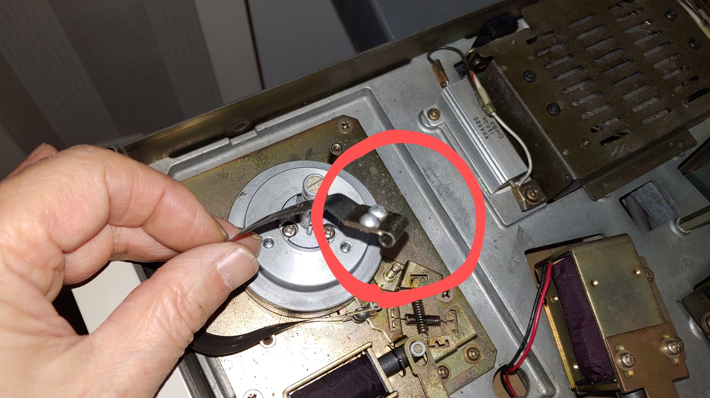 일단 전원을 넣고 점검해 보니 오른쪽 take up motor 가 돌지 않는다. 손으로 돌려 보니 어딘가 걸린 듯한 느낌이 난다.