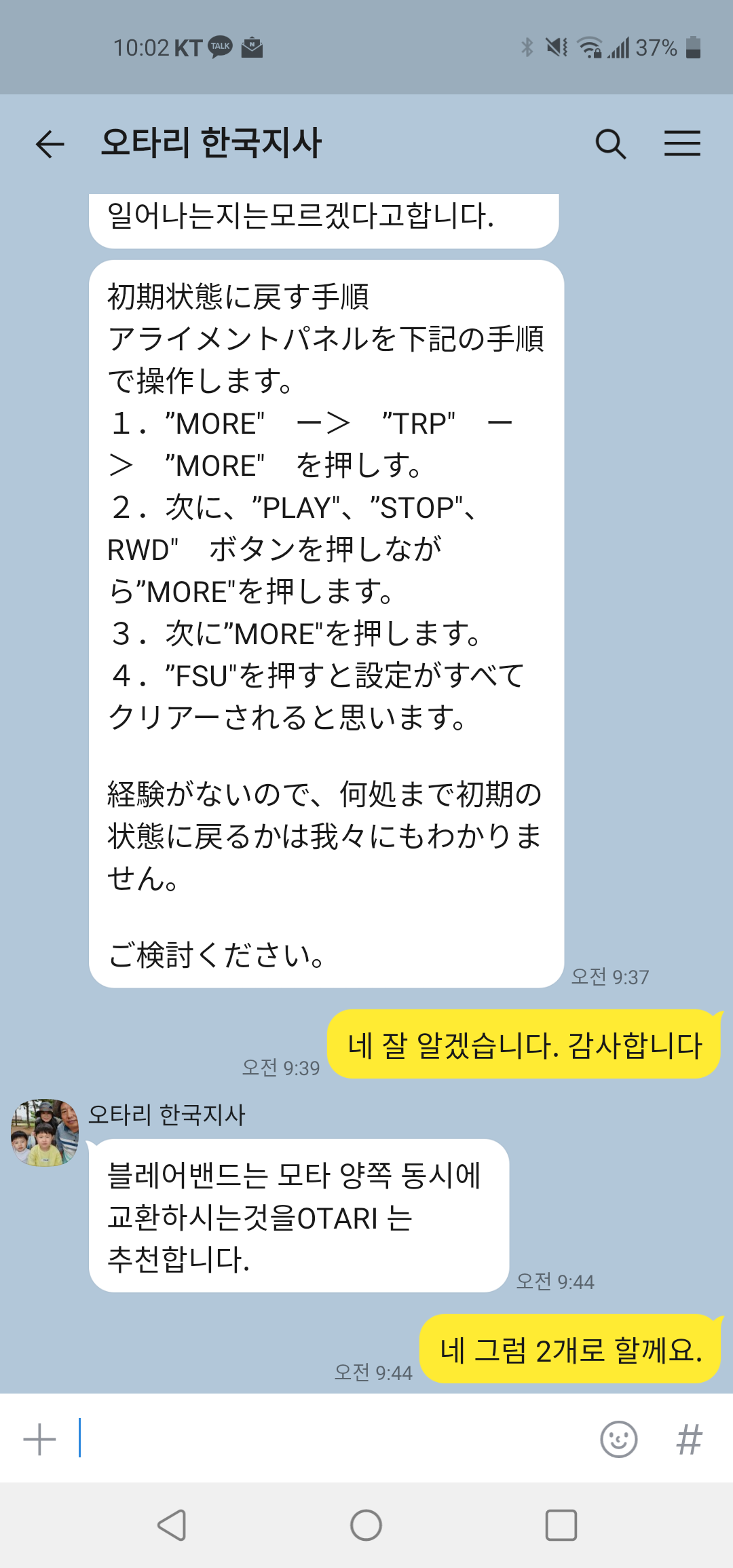 신품 브레이크 패드를 한국 지사를 통해 일본 본사에 구매 의뢰를 해서 약 2주 후 도착.