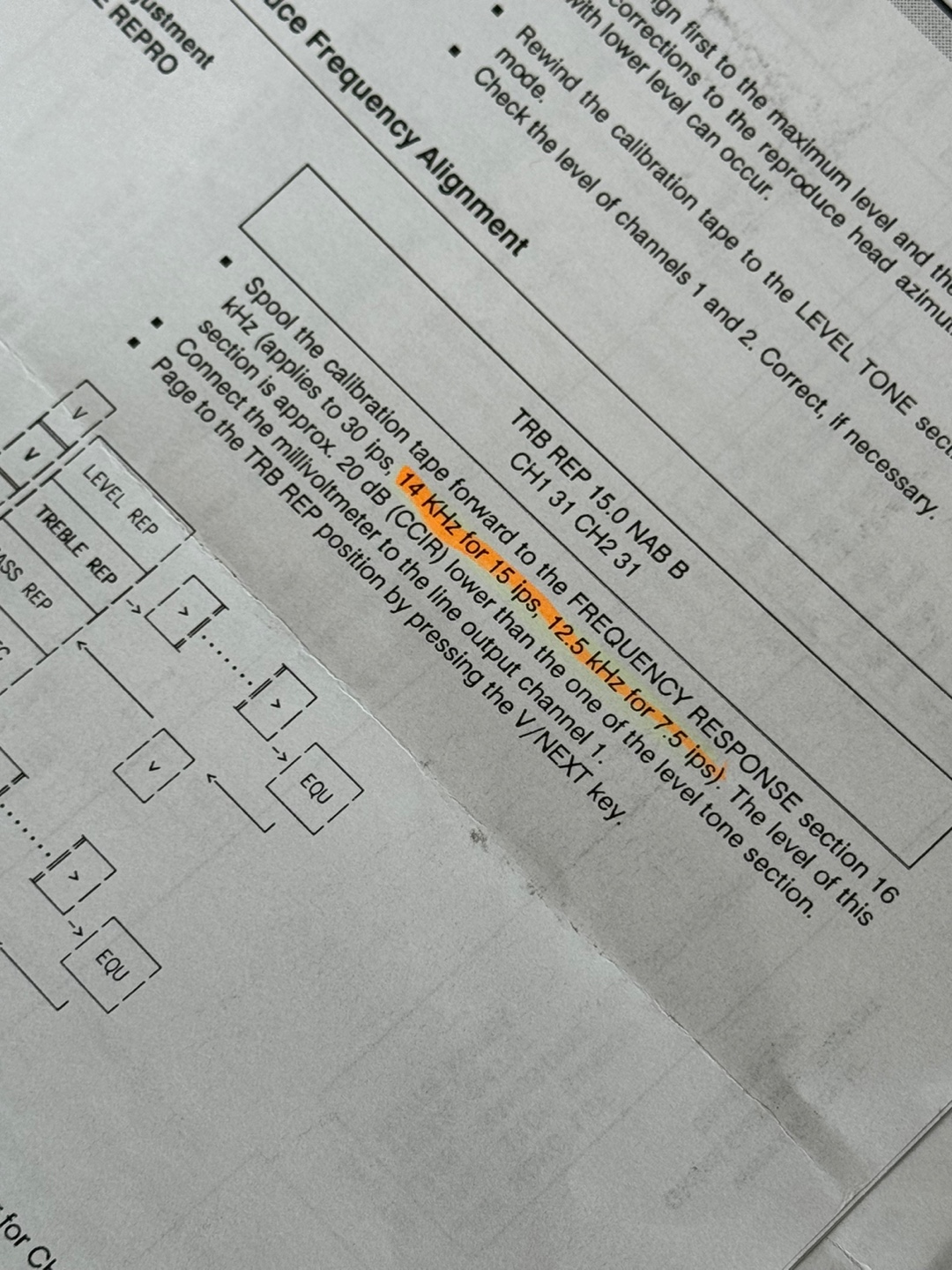 - 15 ips NAB playback Level , 10KHz, 63 Hz 재생 특성 조정